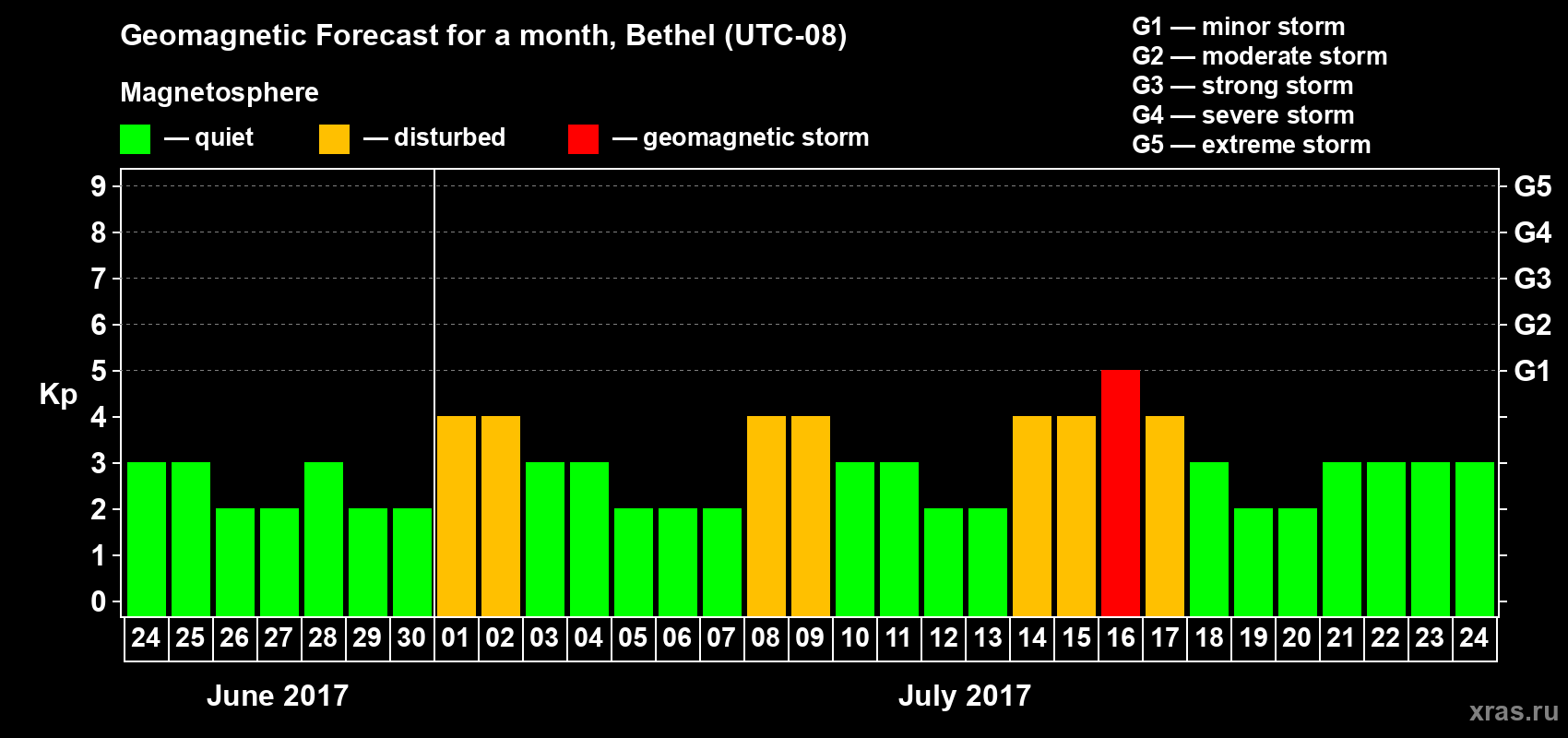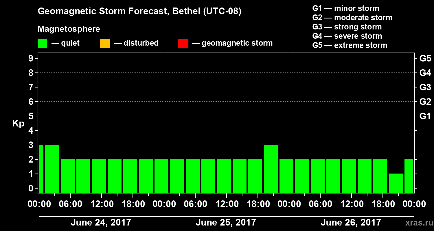 Geomagnetic storm forecast in Bethel for Jun 24, 2017
