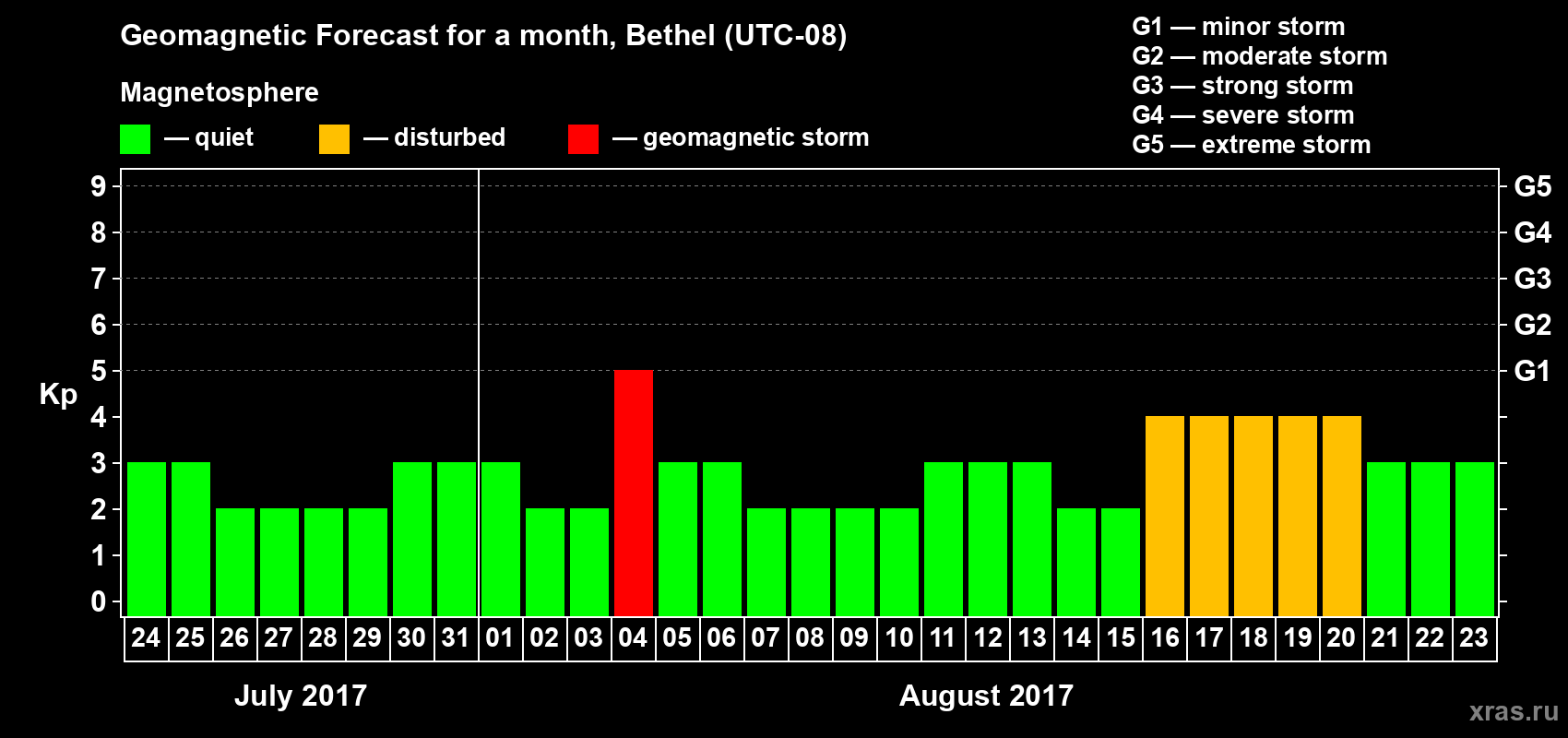 Geomagnetic storm forecast in Bethel for Jul 24, 2017