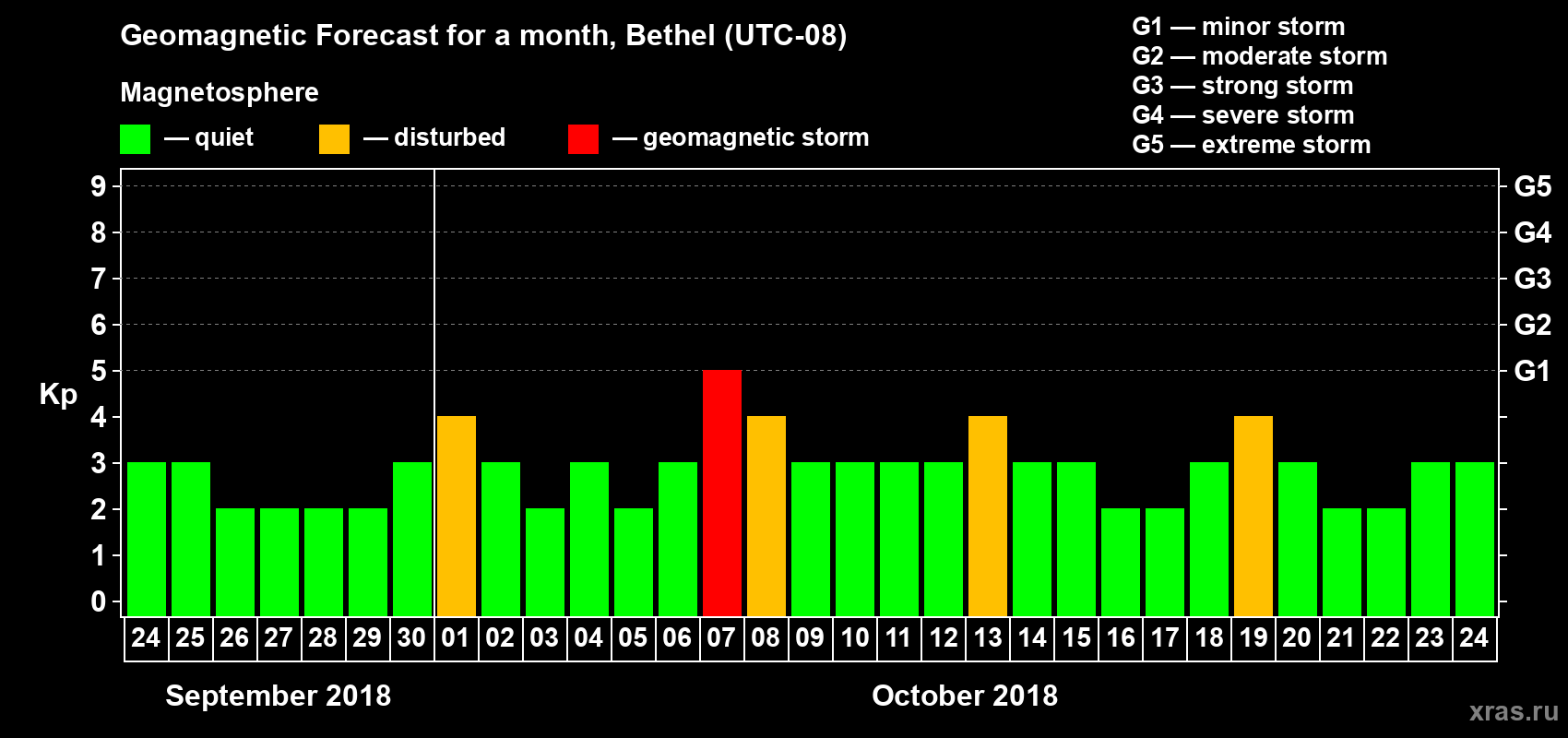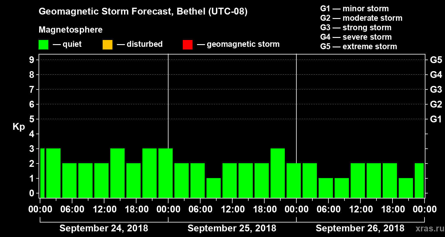 Geomagnetic storm forecast in Bethel for Sep 24, 2018