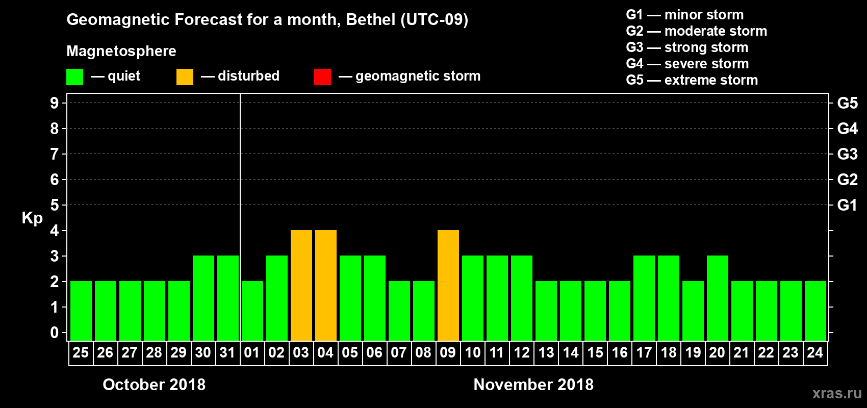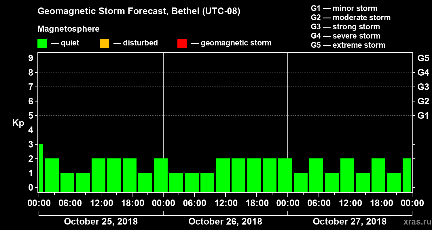 Geomagnetic storm forecast in Bethel for Oct 25, 2018