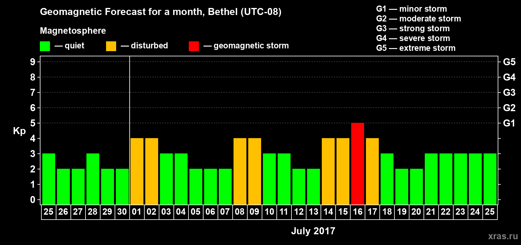 Geomagnetic storm forecast in Bethel for Jun 25, 2017