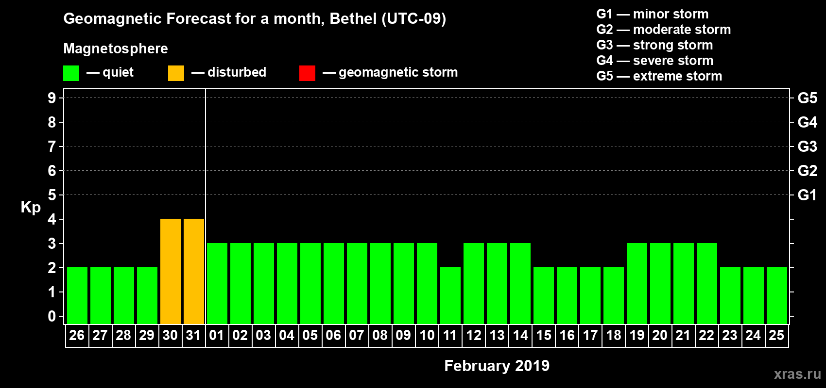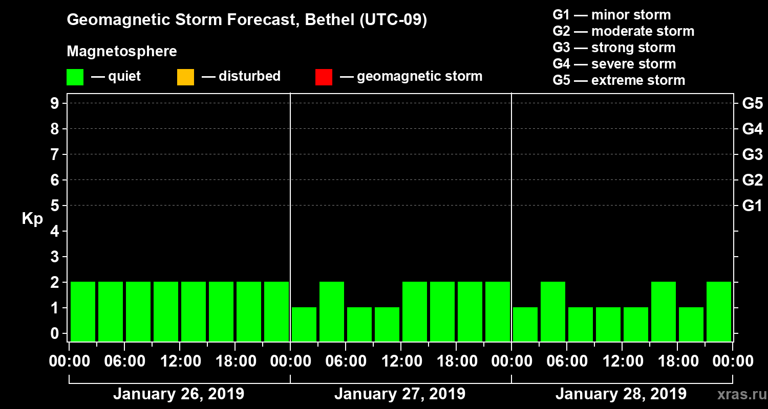 Geomagnetic storm forecast in Bethel for Jan 26, 2019