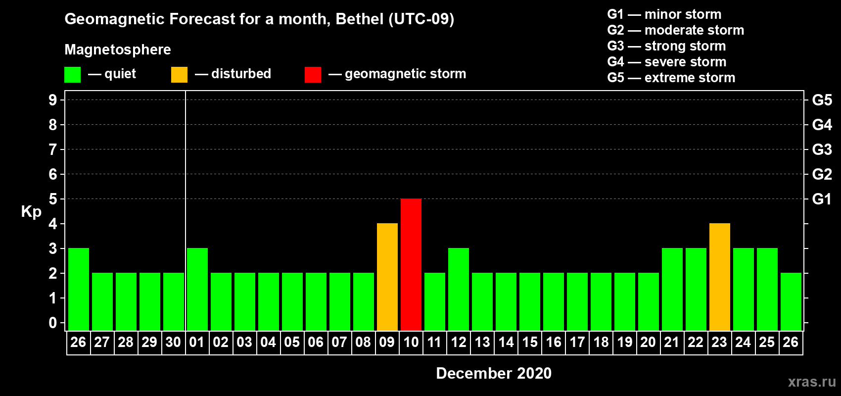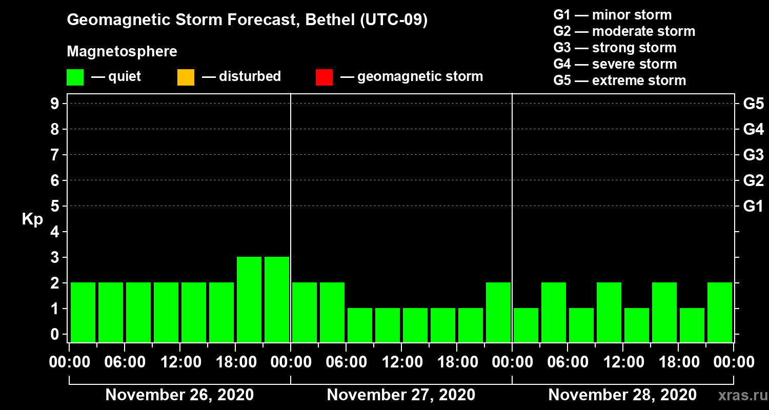 Geomagnetic storm forecast in Bethel for Nov 26, 2020