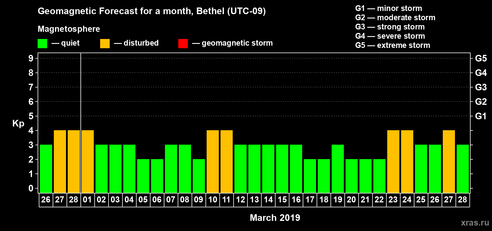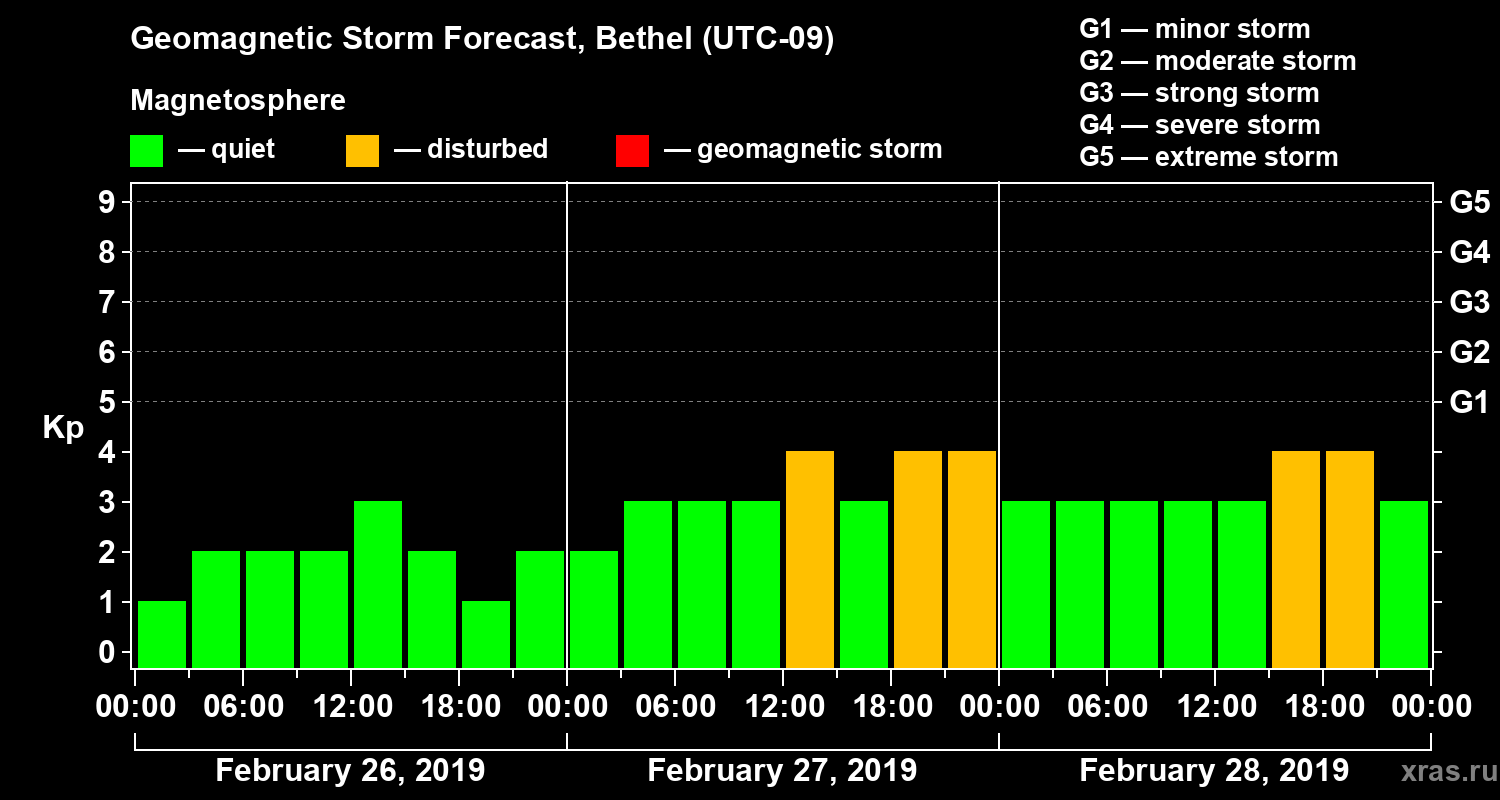 Geomagnetic storm forecast in Bethel for Feb 26, 2019