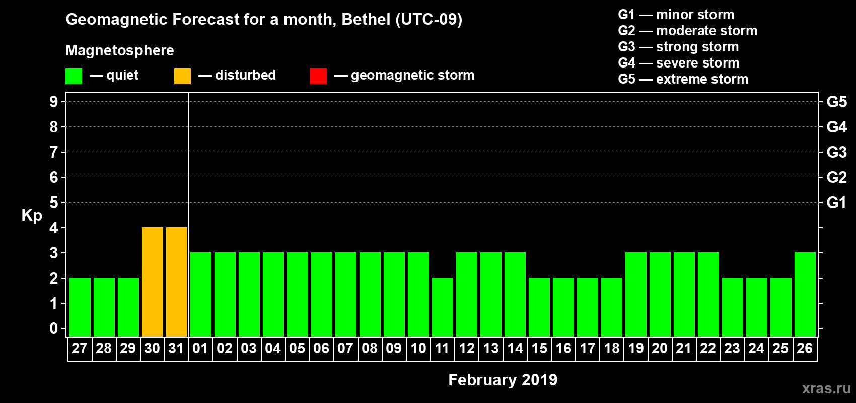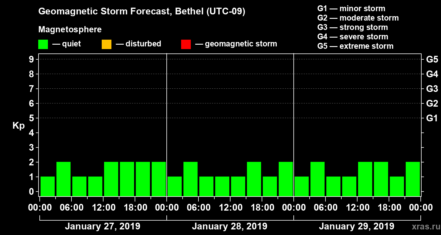 Geomagnetic storm forecast in Bethel for Jan 27, 2019