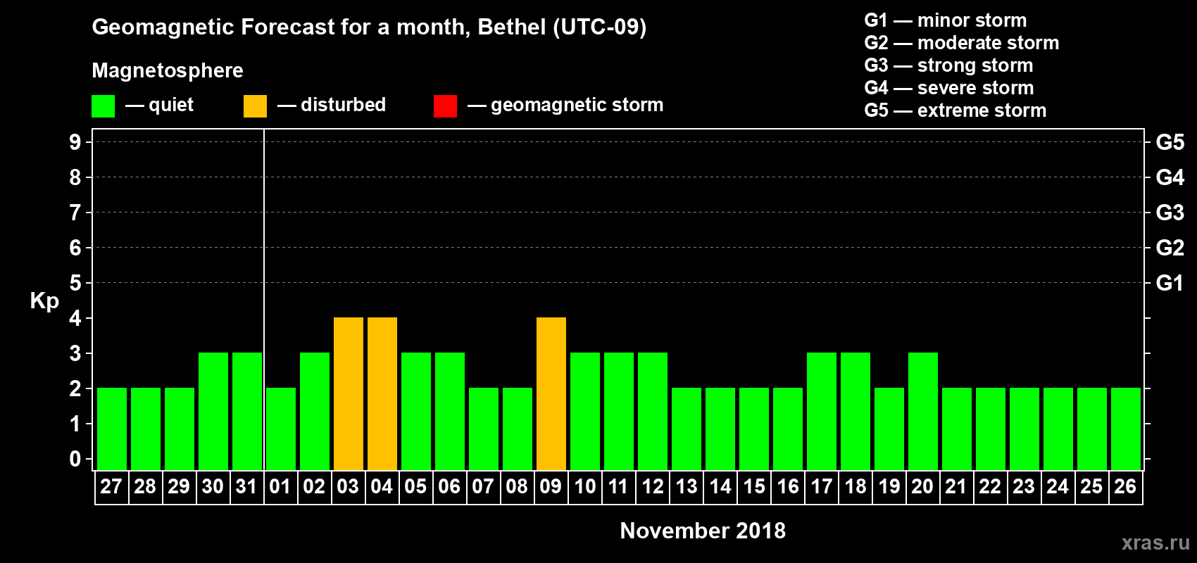 Geomagnetic storm forecast in Bethel for Oct 27, 2018