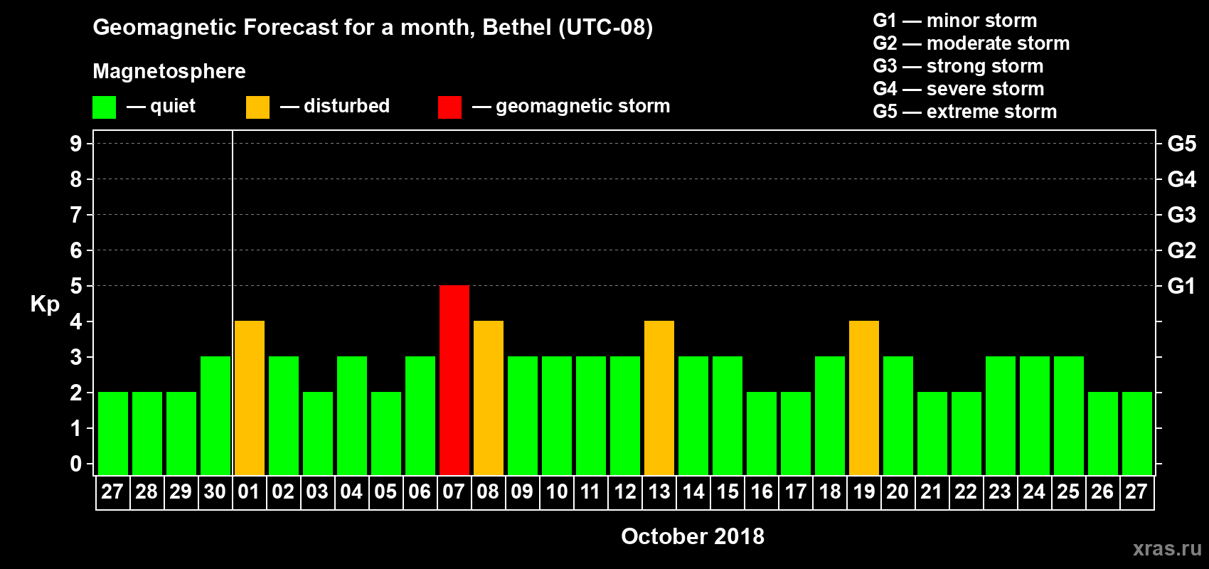 Geomagnetic storm forecast in Bethel for Sep 27, 2018