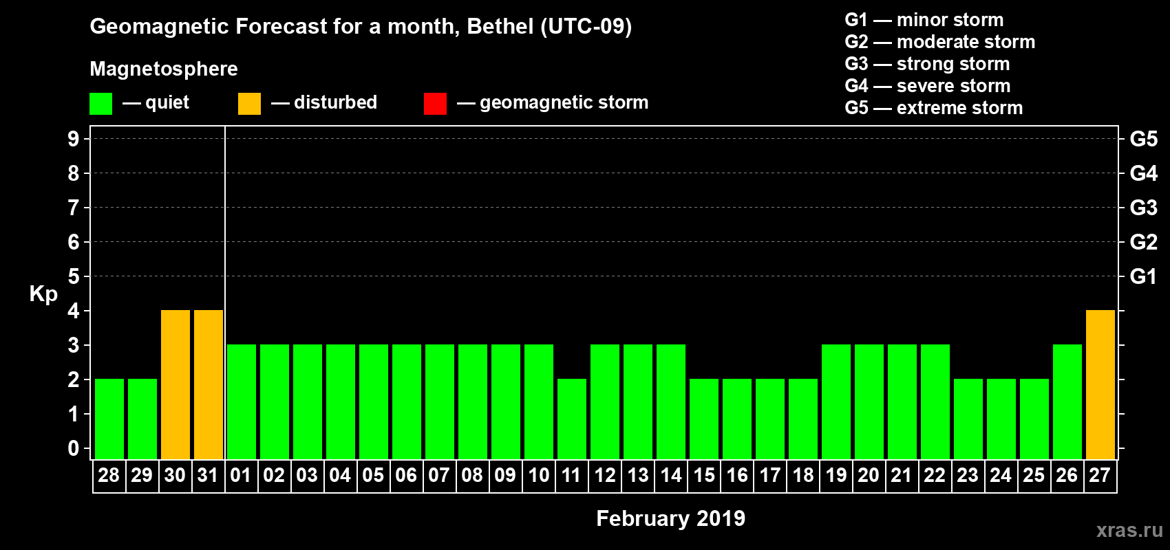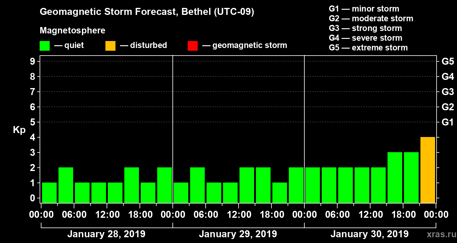 Geomagnetic storm forecast in Bethel for Jan 28, 2019