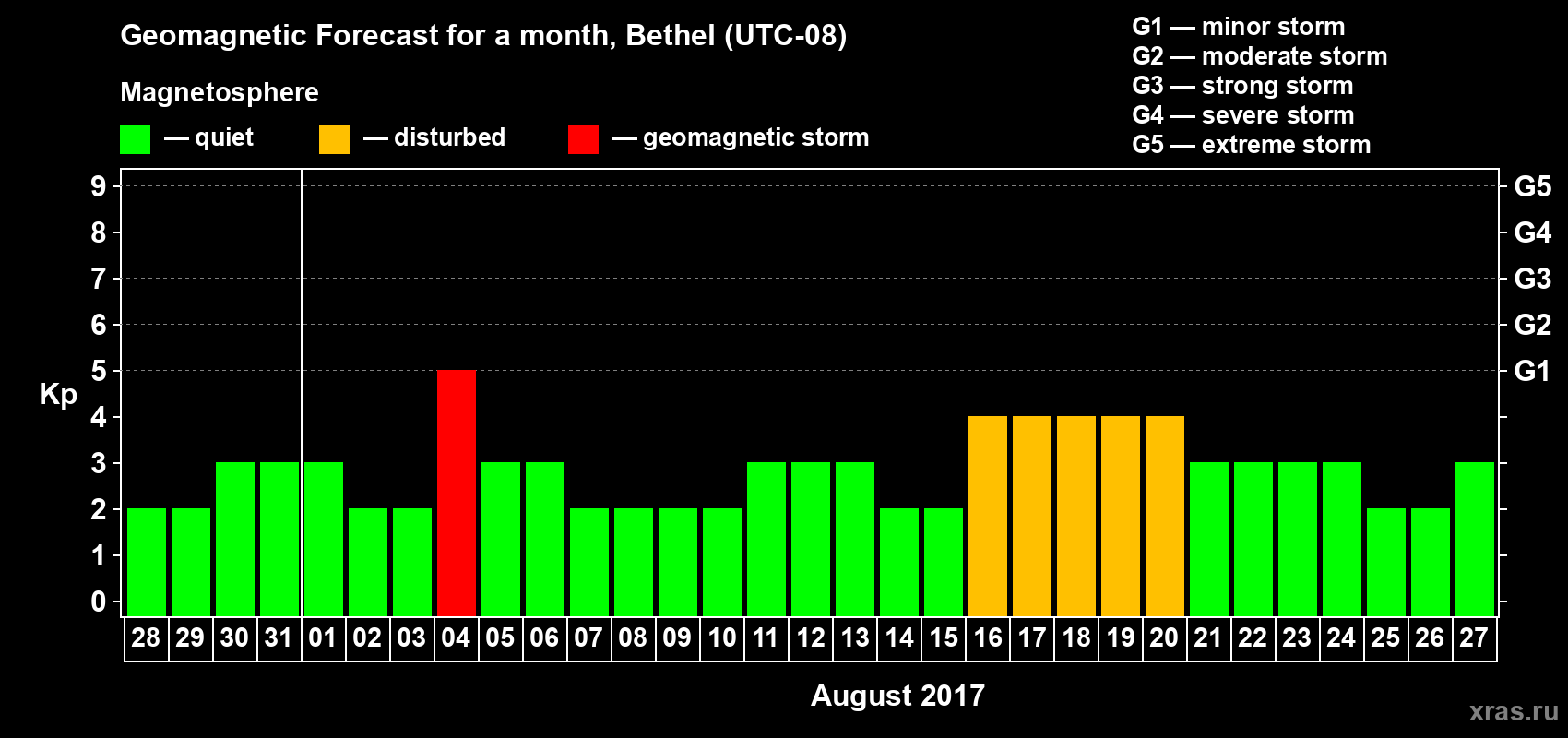 Geomagnetic storm forecast in Bethel for Jul 28, 2017