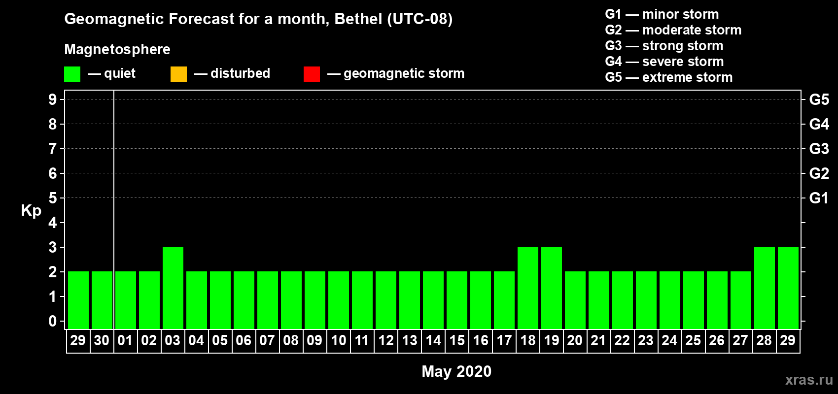 Geomagnetic storm forecast in Bethel for Apr 29, 2020