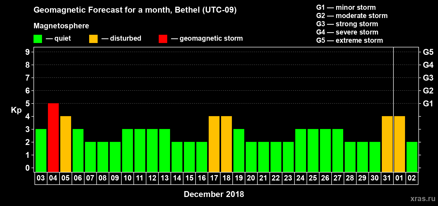 Geomagnetic storm forecast in Bethel for Dec 03, 2017