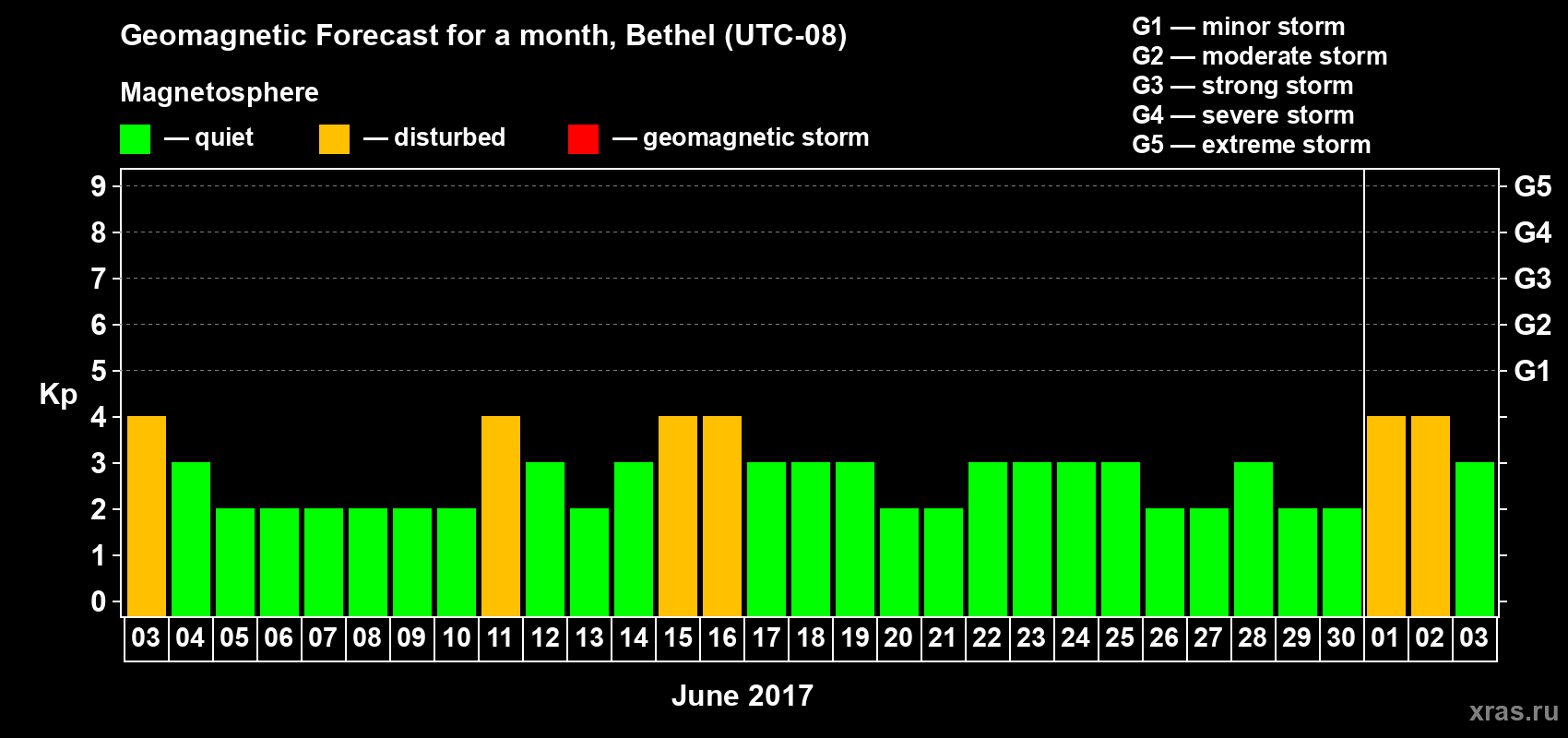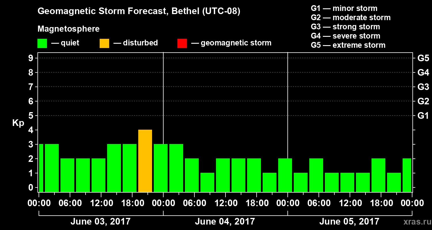 Geomagnetic storm forecast in Bethel for Jun 03, 2017