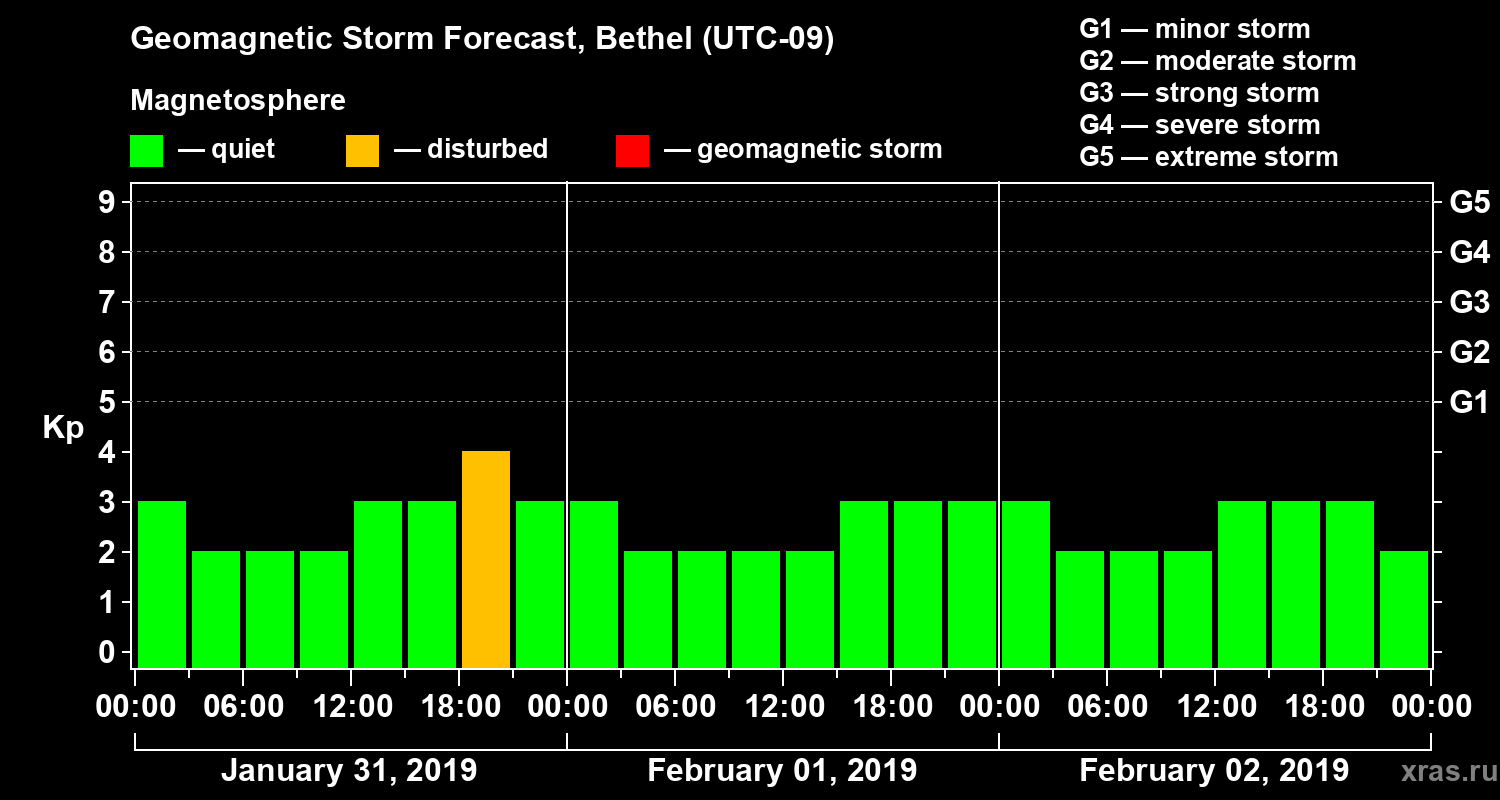 Geomagnetic storm forecast in Bethel for Jan 31, 2019
