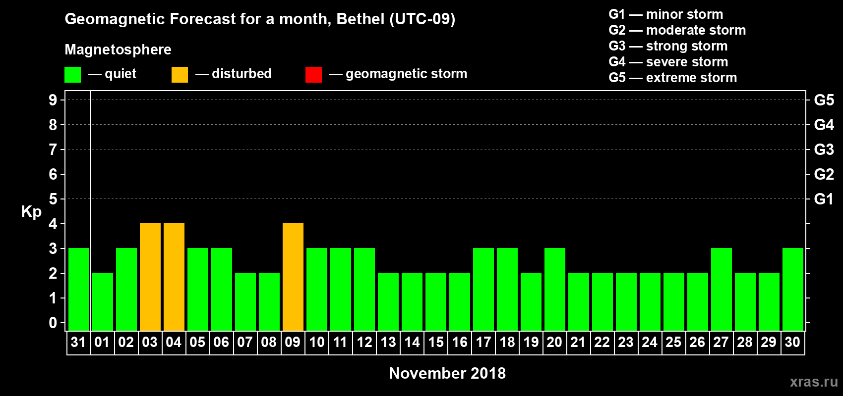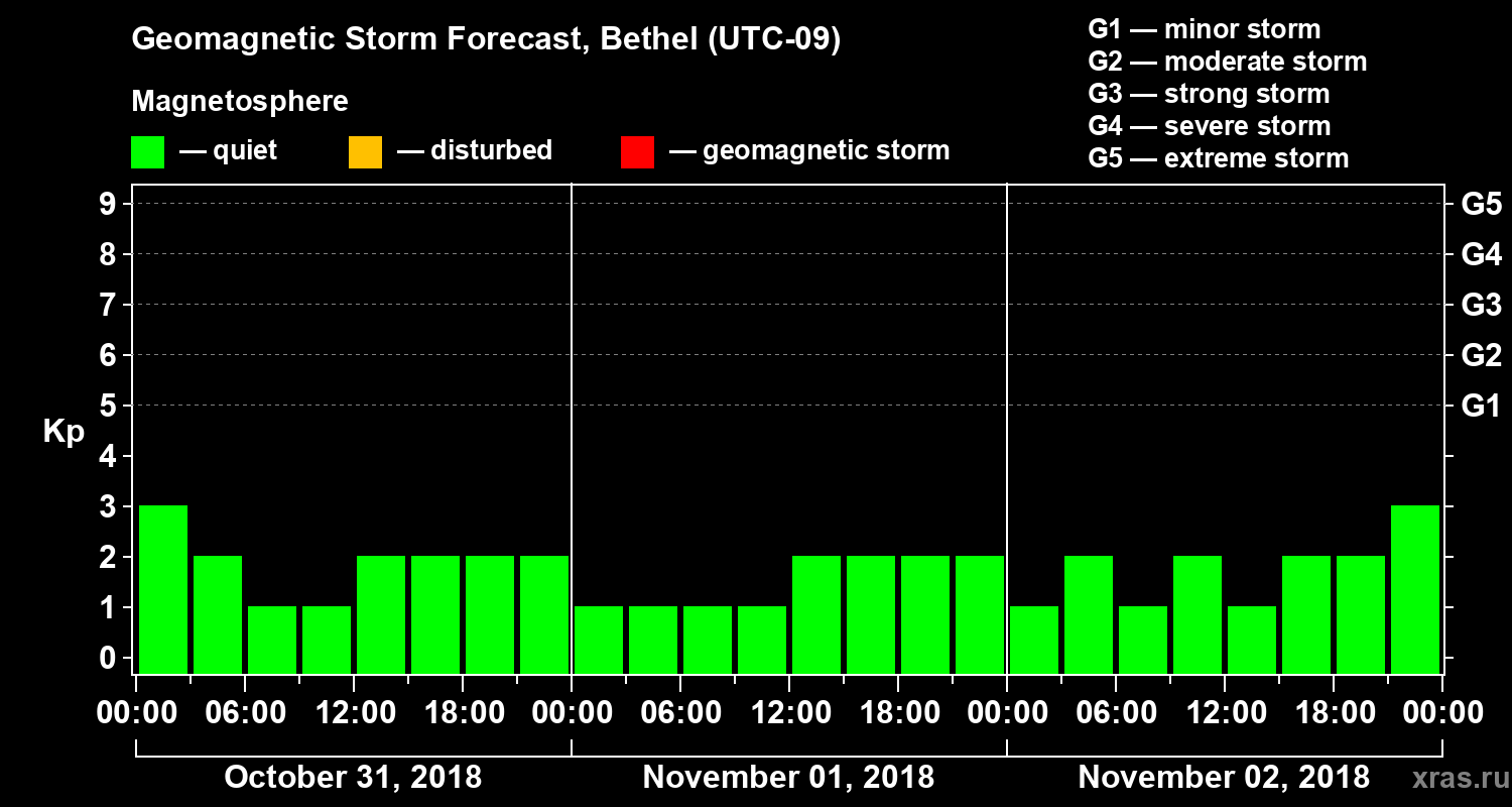 Geomagnetic storm forecast in Bethel for Oct 31, 2018