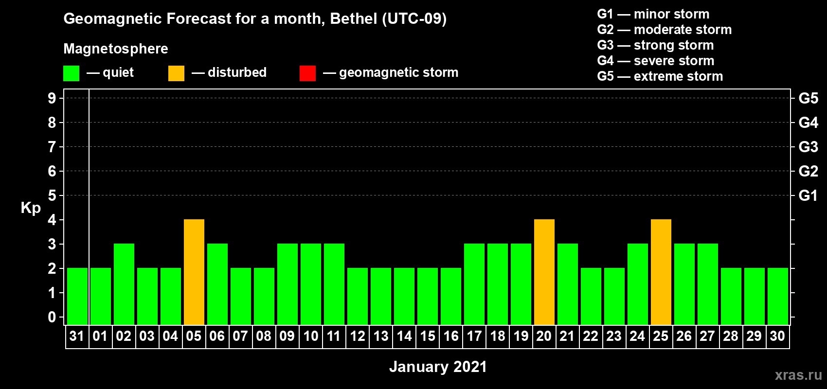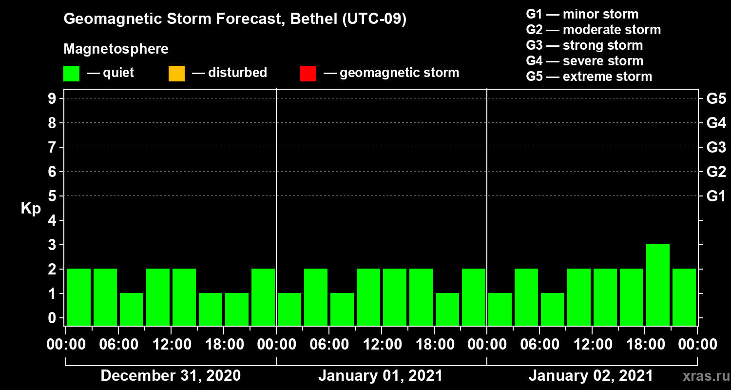 Geomagnetic storm forecast in Bethel for Dec 31, 2020