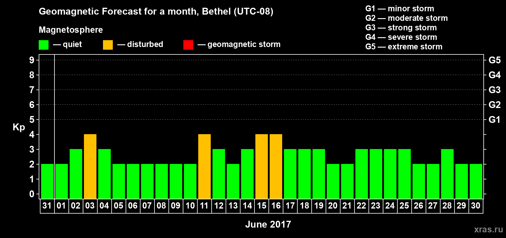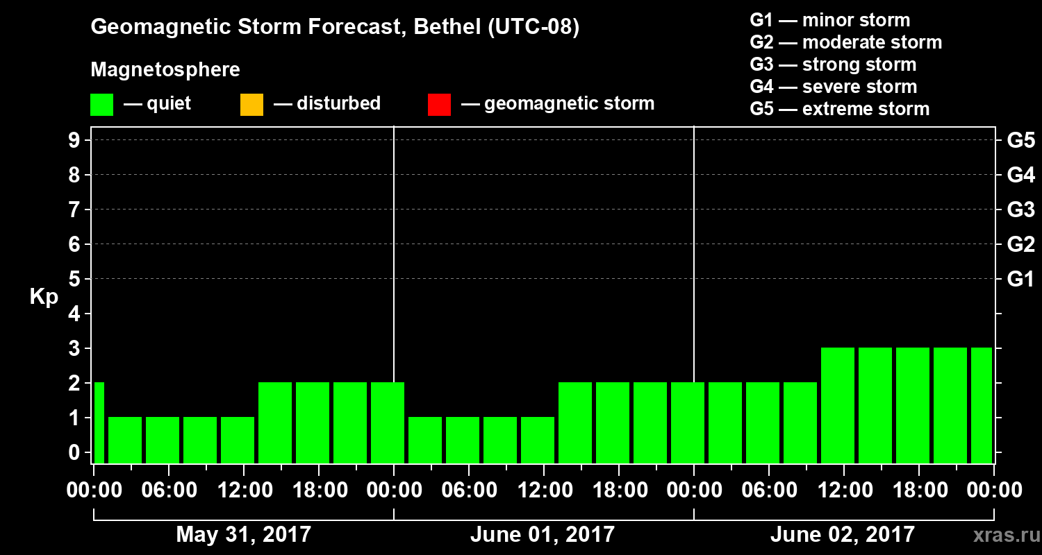 Geomagnetic storm forecast in Bethel for May 31, 2017