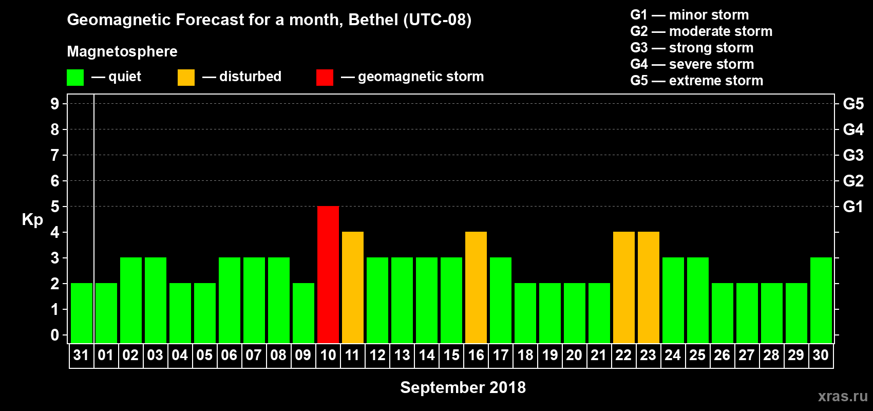 Geomagnetic storm forecast in Bethel for Aug 31, 2018