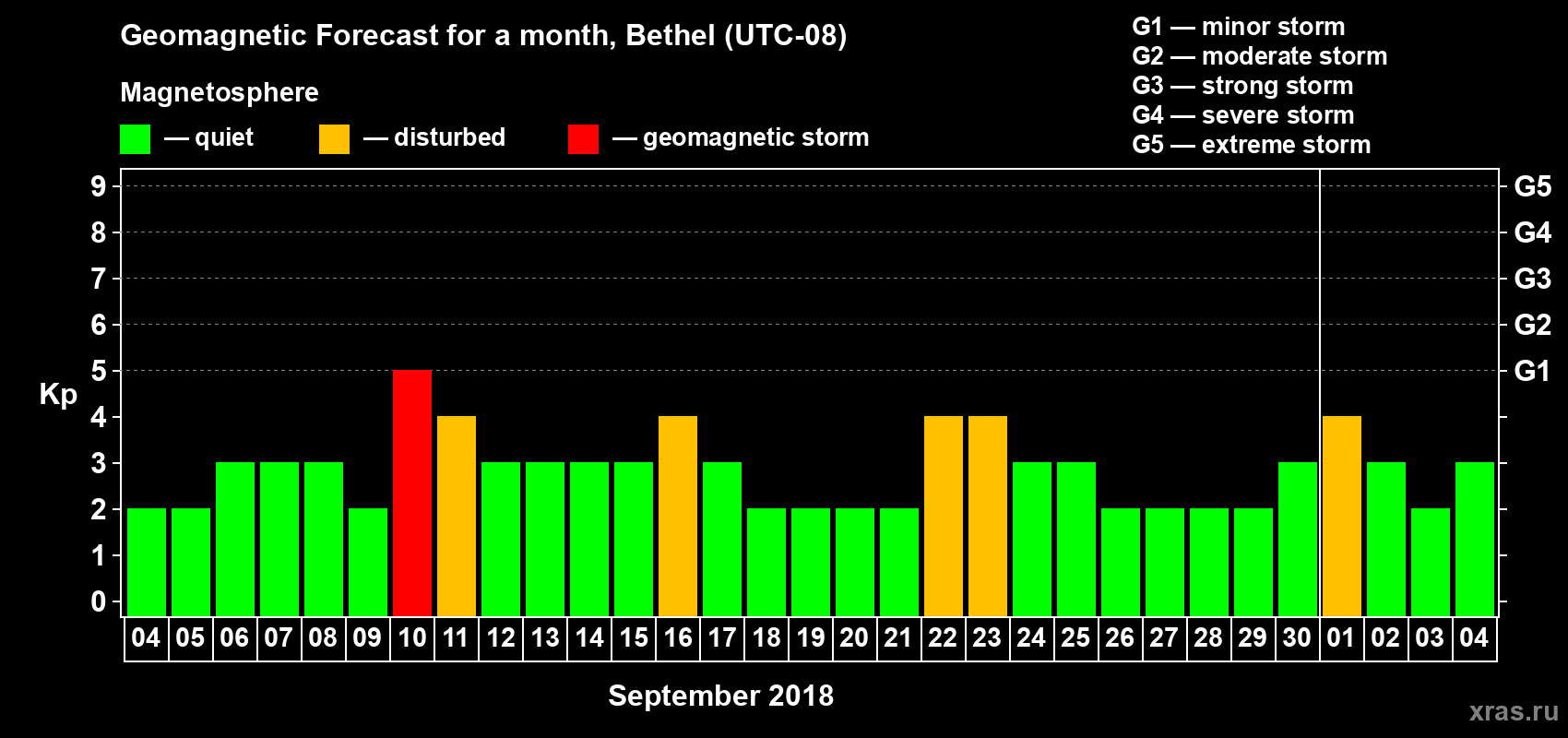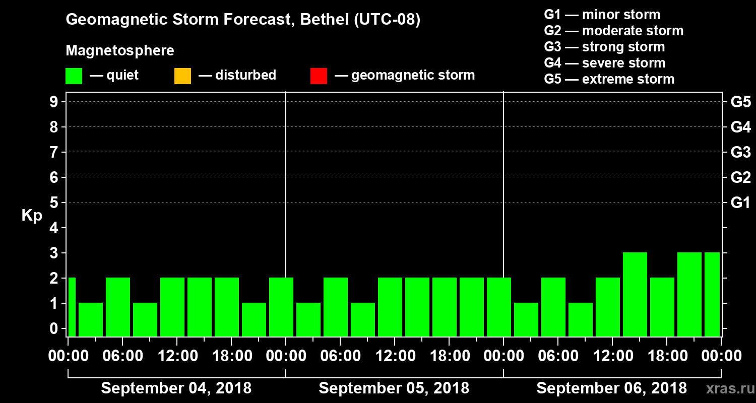 Geomagnetic storm forecast in Bethel for Sep 04, 2018