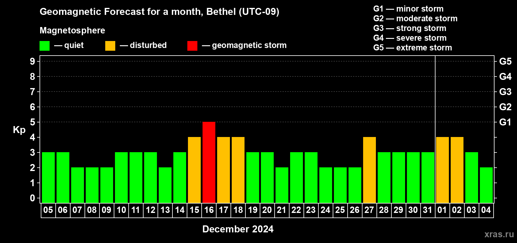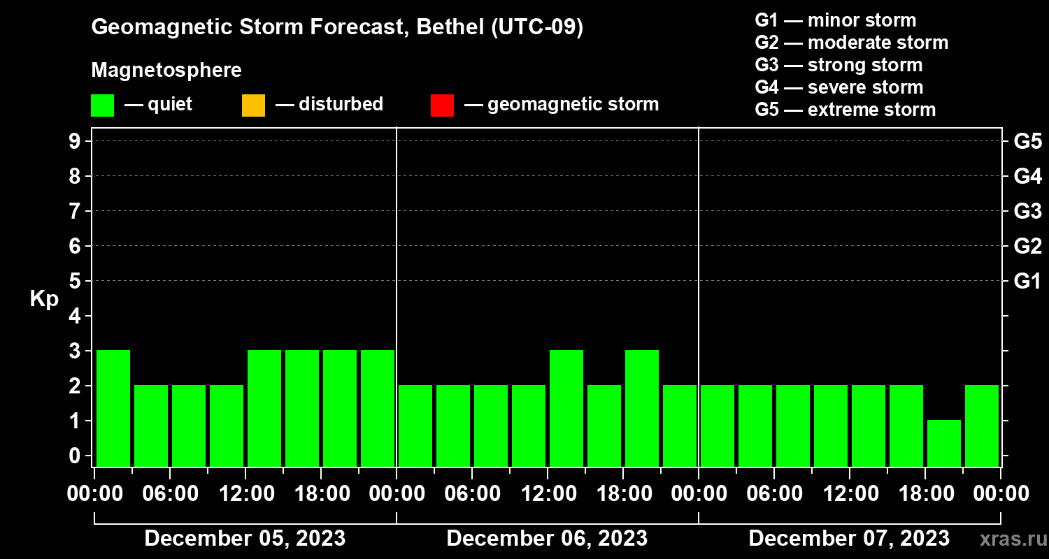 Geomagnetic storm forecast in Bethel for Dec 05, 2023