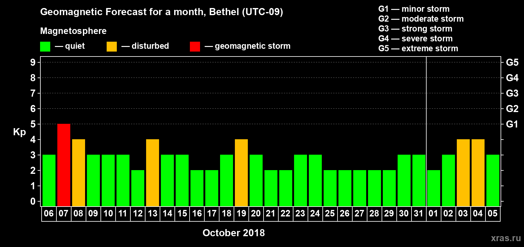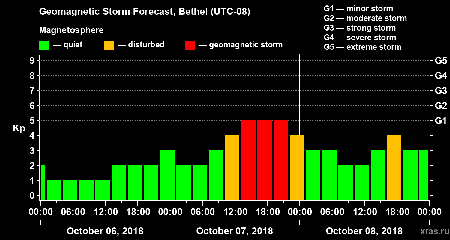 Geomagnetic storm forecast in Bethel for Oct 06, 2018