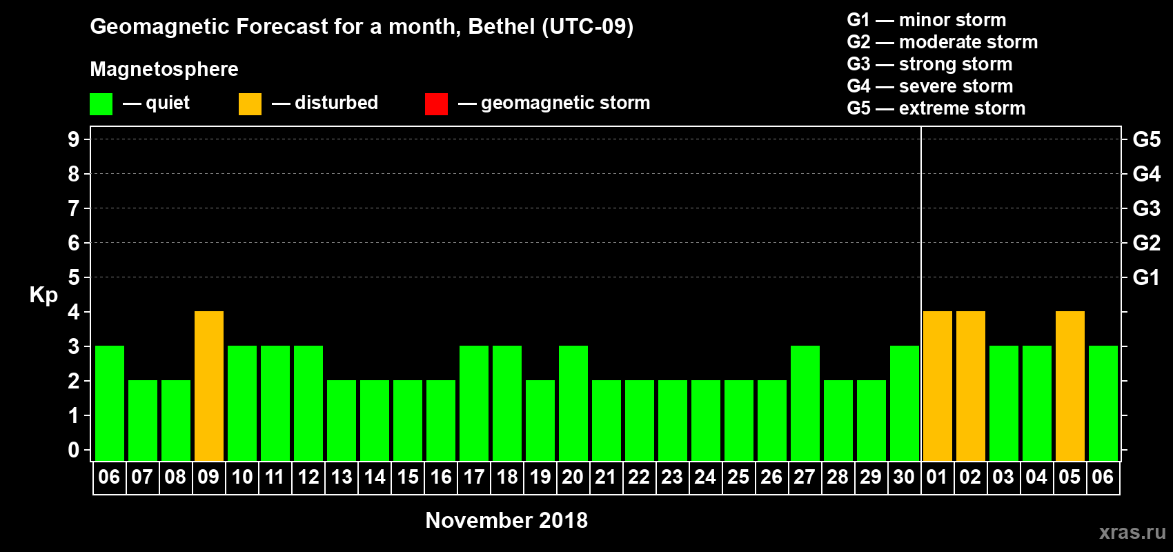 Geomagnetic storm forecast in Bethel for Nov 06, 2018