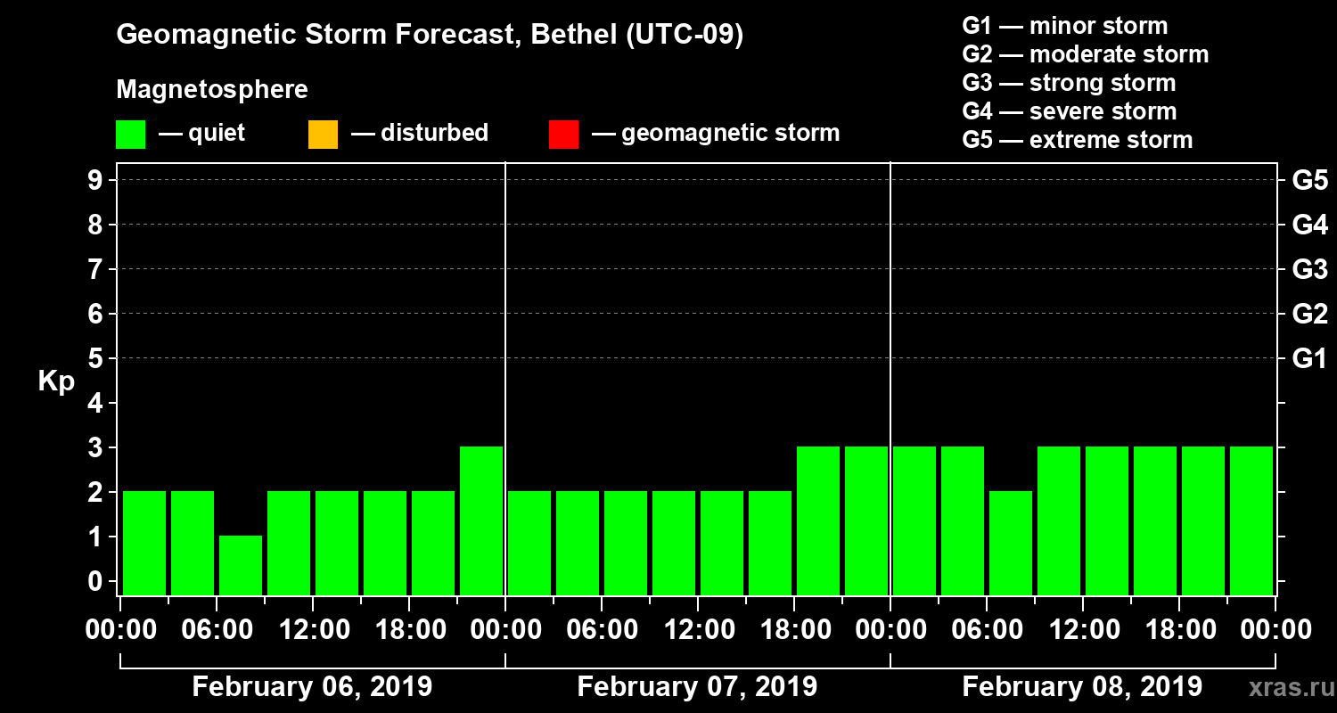 Geomagnetic storm forecast in Bethel for Feb 06, 2019