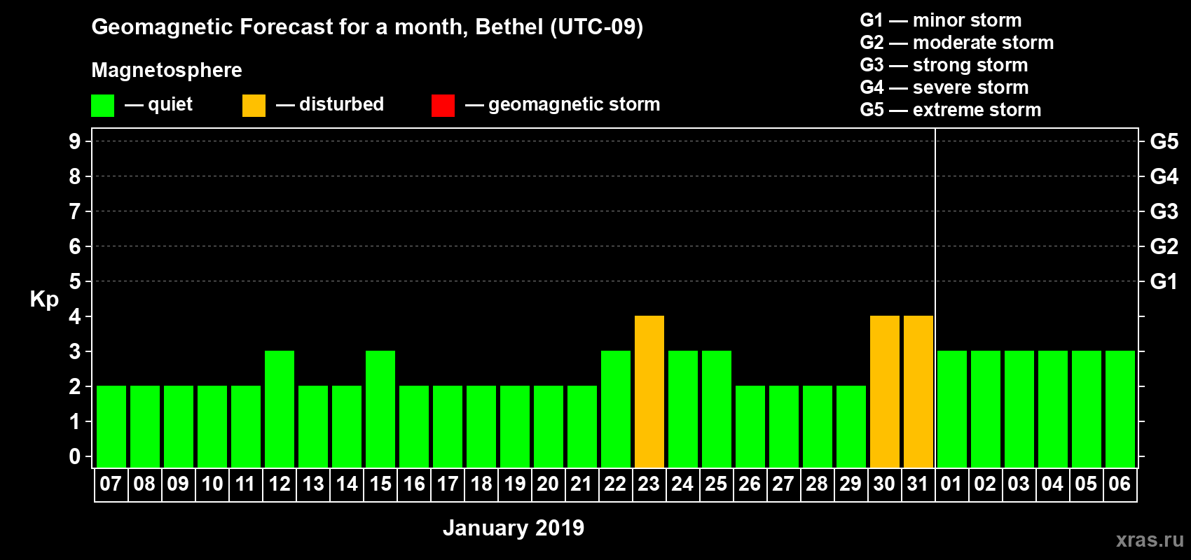 Geomagnetic storm forecast in Bethel for Jan 07, 2019