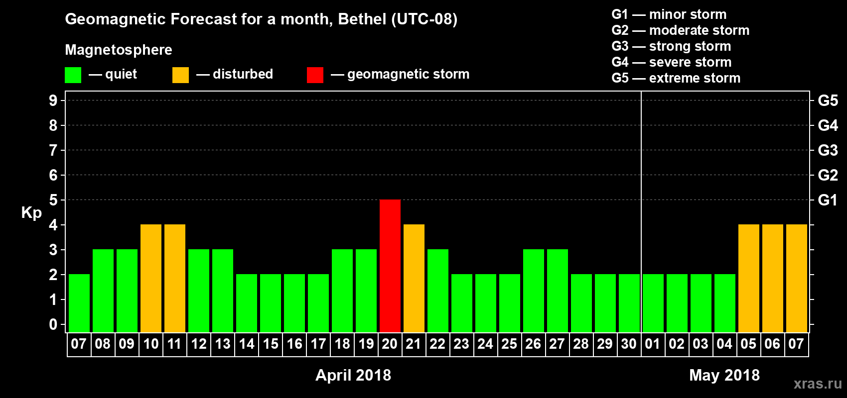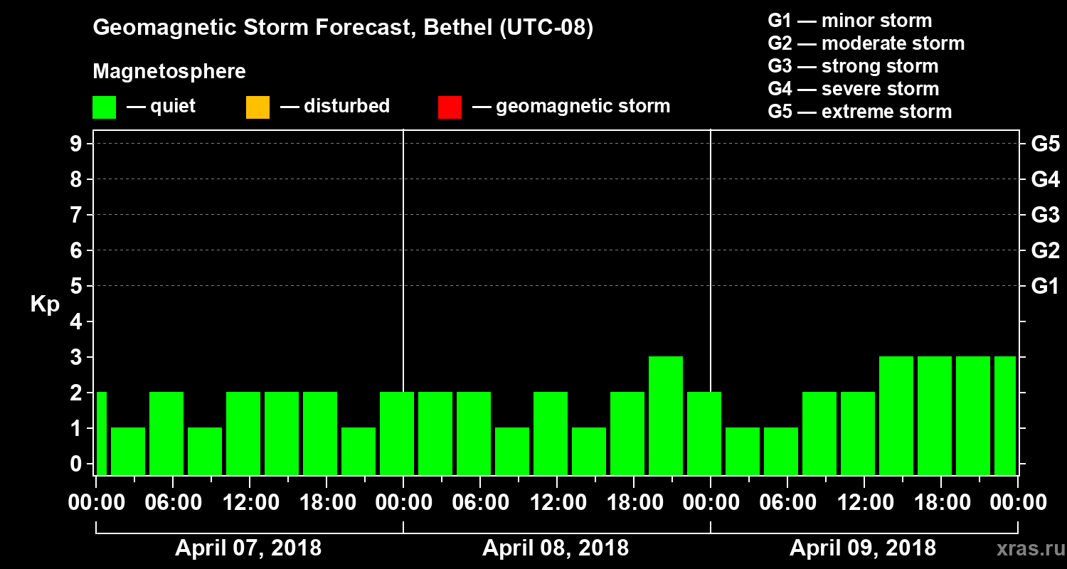 Geomagnetic storm forecast in Bethel for Apr 07, 2018