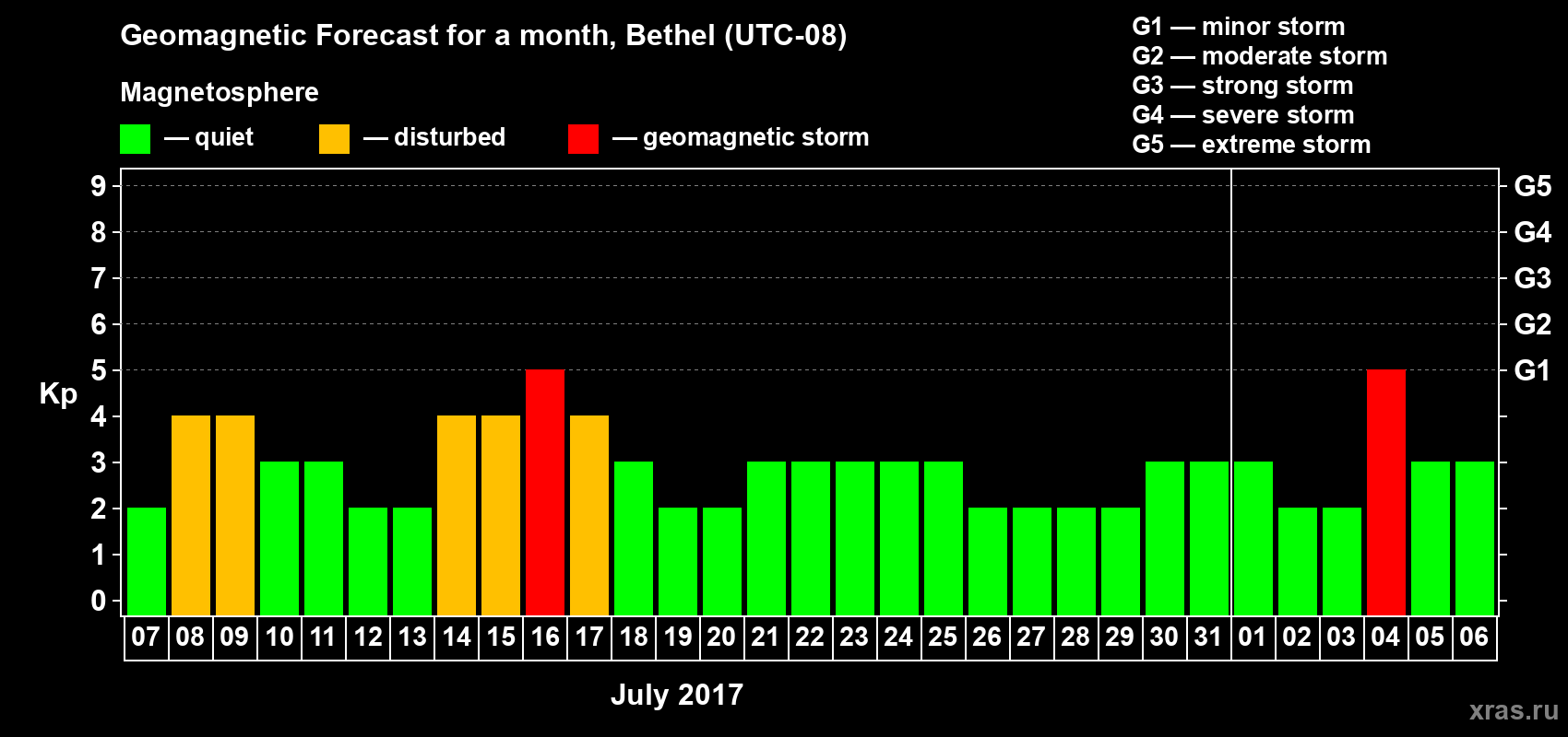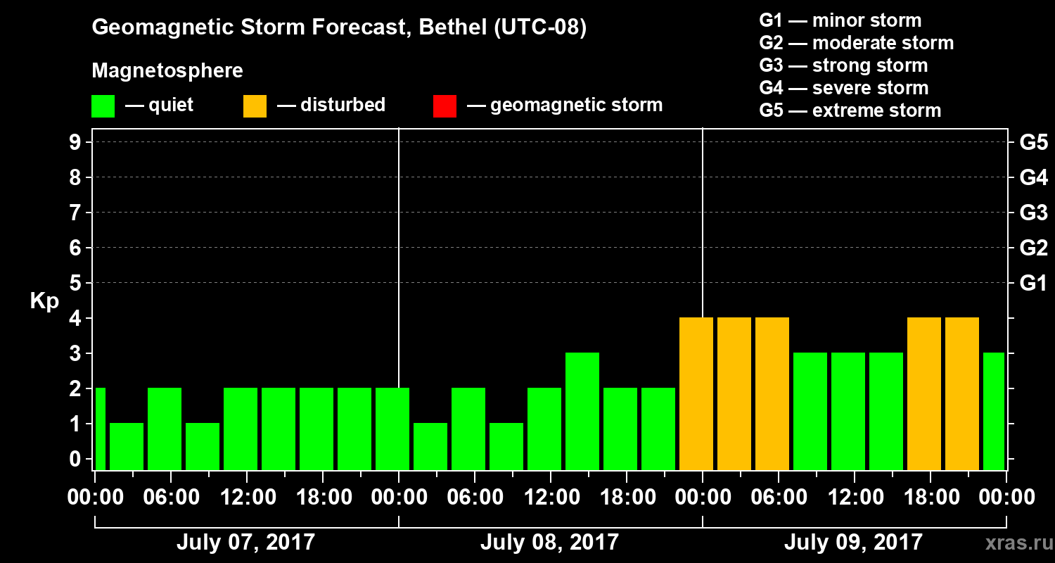 Geomagnetic storm forecast in Bethel for Jul 07, 2017