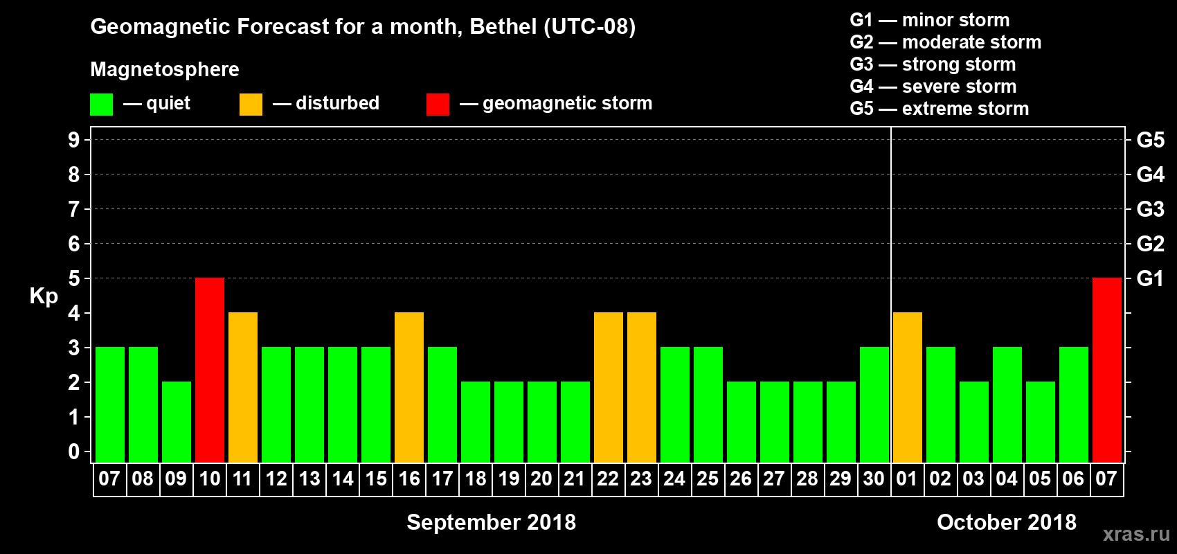 Geomagnetic storm forecast in Bethel for Sep 07, 2018