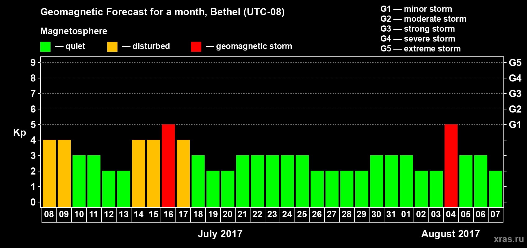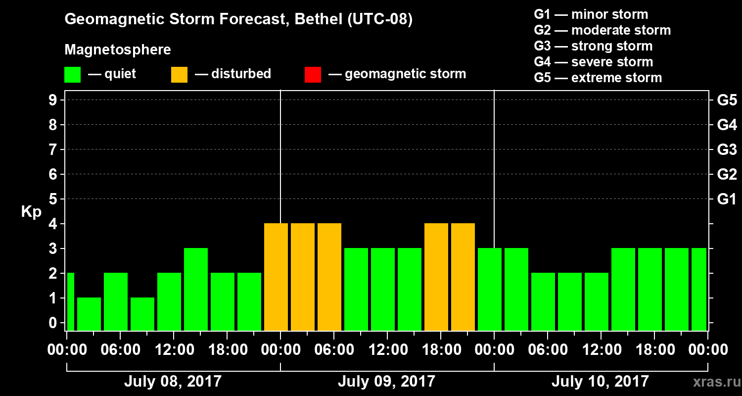 Geomagnetic storm forecast in Bethel for Jul 08, 2017