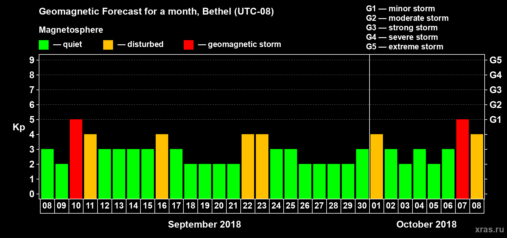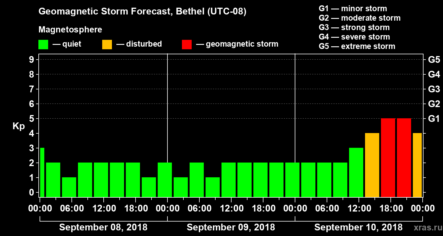 Geomagnetic storm forecast in Bethel for Sep 08, 2018