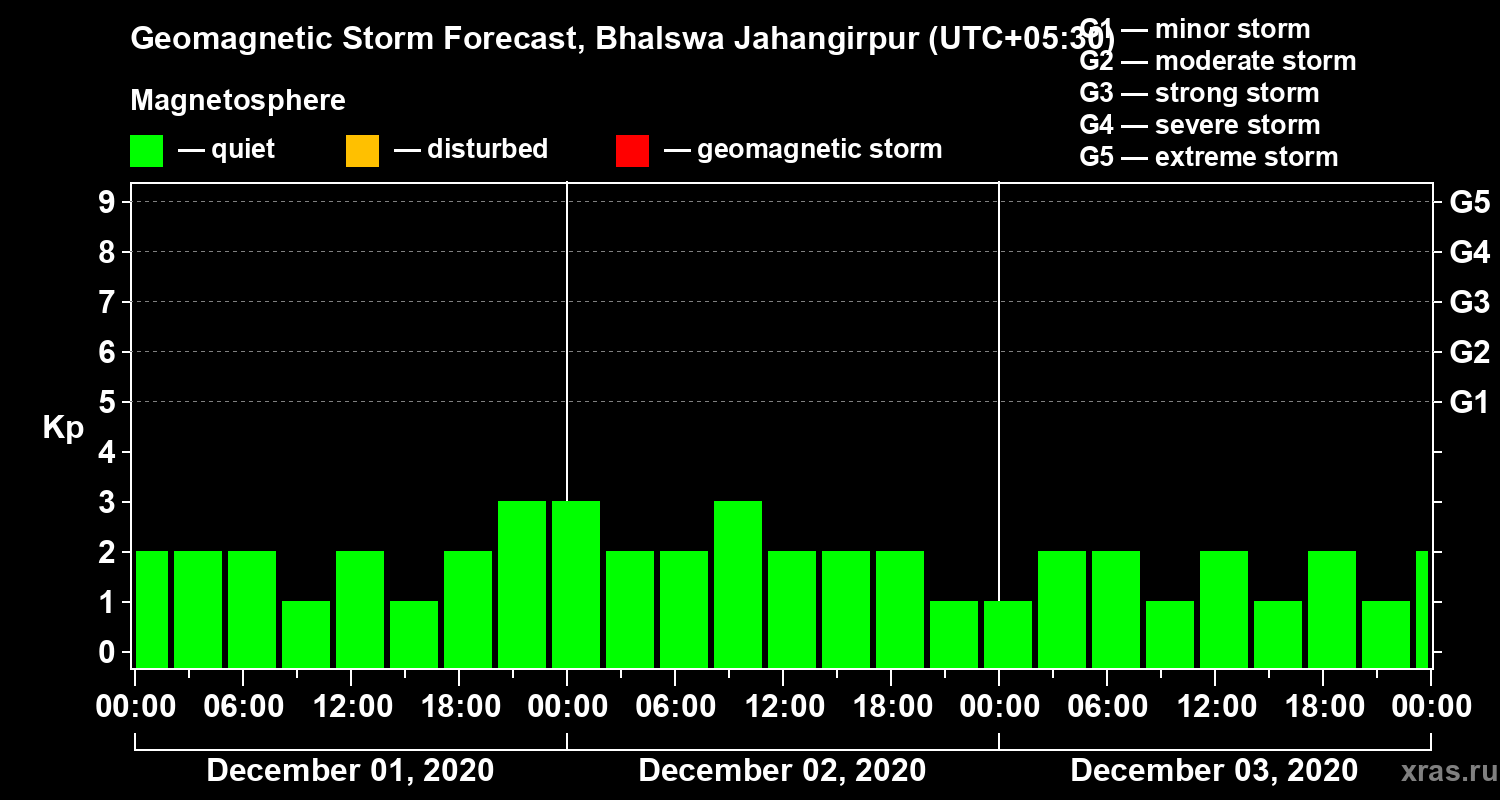 Geomagnetic storm forecast in Bhalswa Jahangirpur for Dec 01, 2020