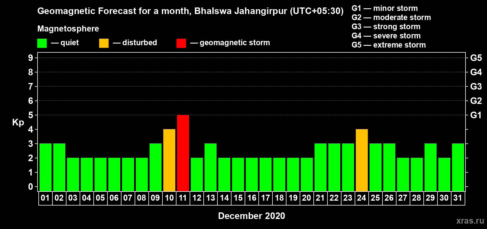 Geomagnetic activity forecast in Bhalswa Jahangirpur — Dec 01, 2020