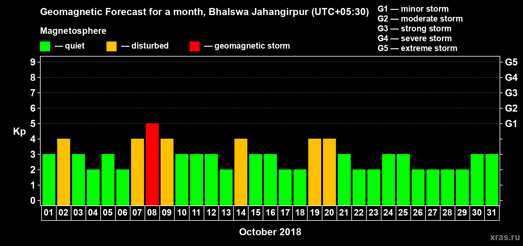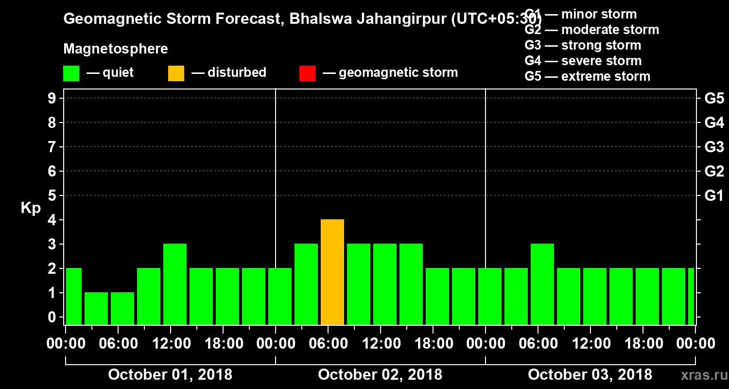 Geomagnetic storm forecast in Bhalswa Jahangirpur for Oct 01, 2018