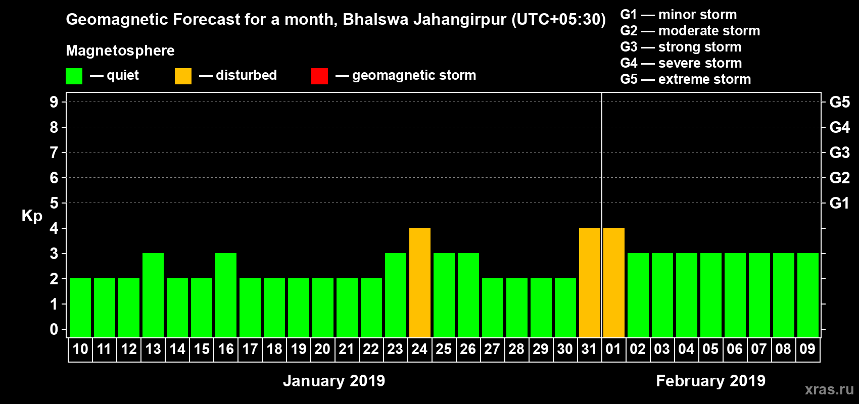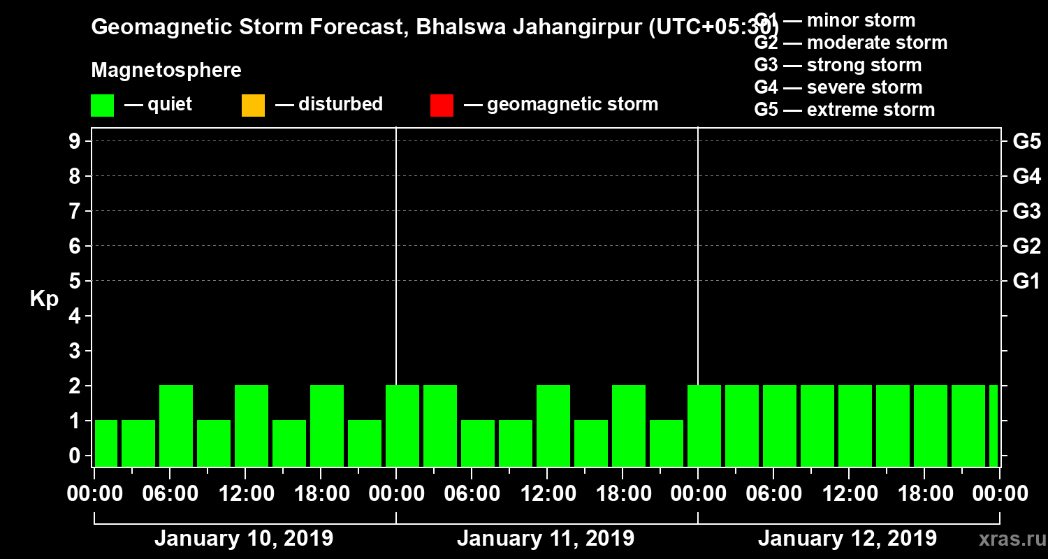 Geomagnetic storm forecast in Bhalswa Jahangirpur for Jan 10, 2019