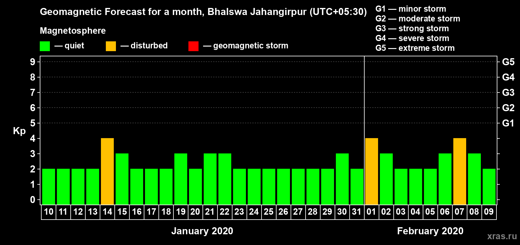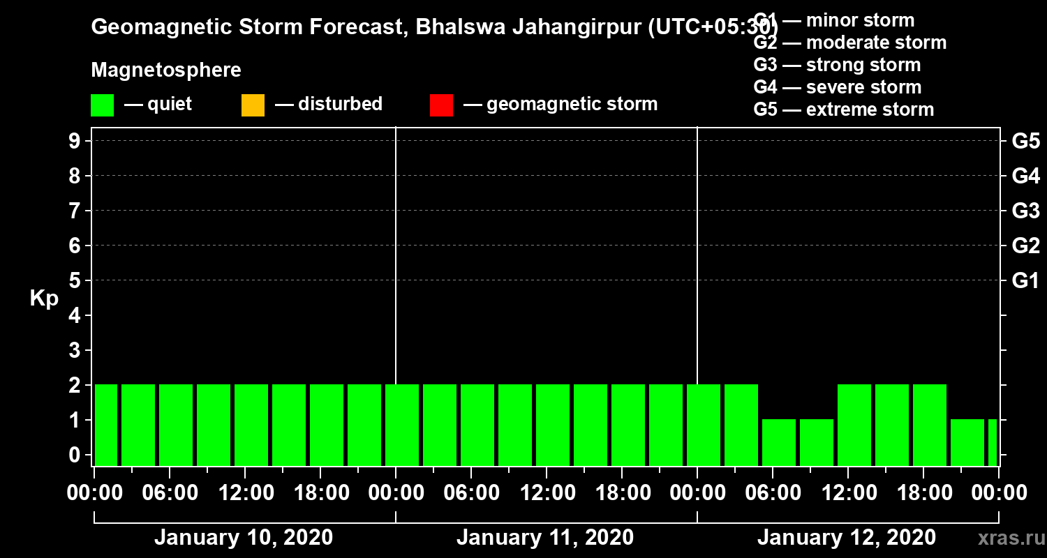 Geomagnetic storm forecast in Bhalswa Jahangirpur for Jan 10, 2020