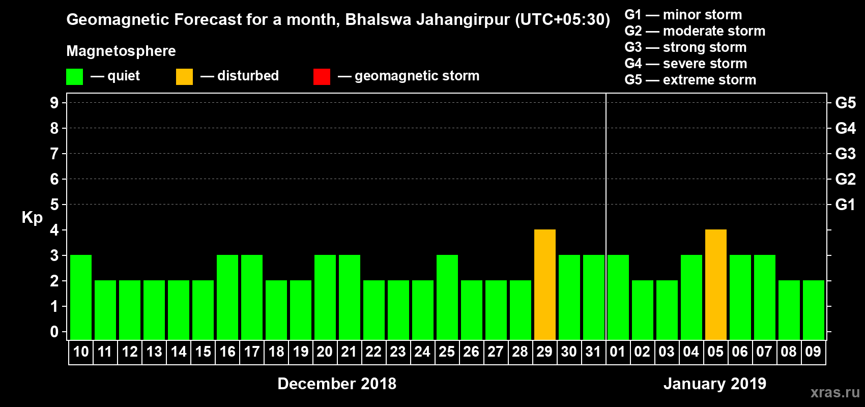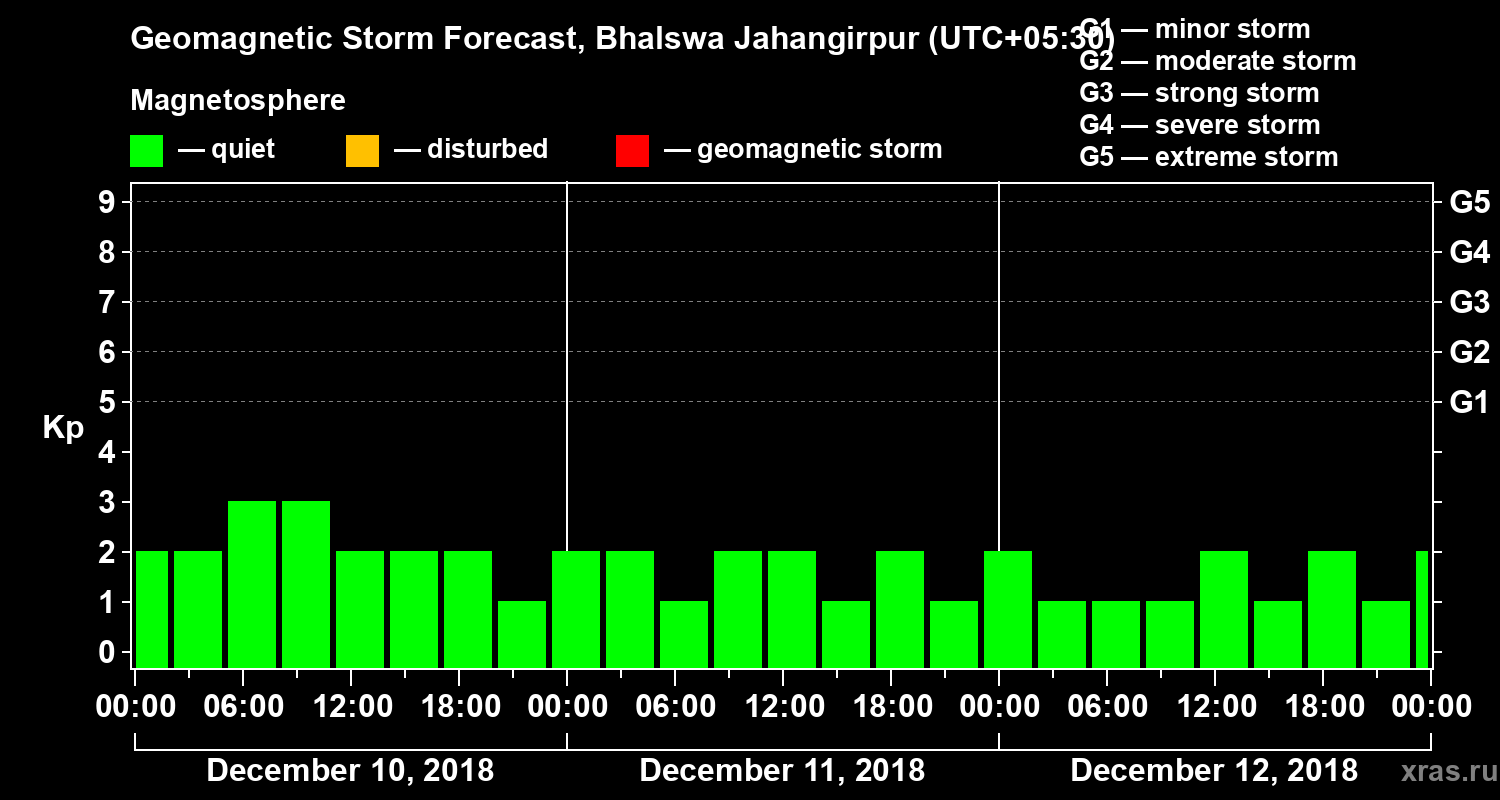 Geomagnetic storm forecast in Bhalswa Jahangirpur for Dec 10, 2018