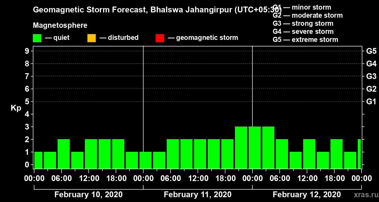 Geomagnetic storm forecast in Bhalswa Jahangirpur for Feb 10, 2020