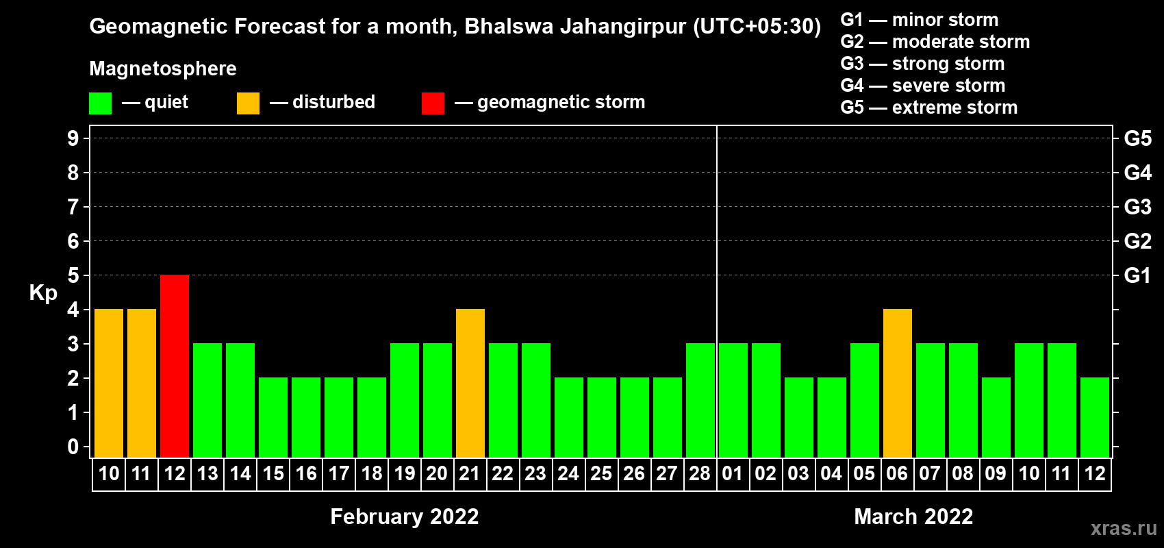 Geomagnetic storm forecast in Bhalswa Jahangirpur for Feb 10, 2022