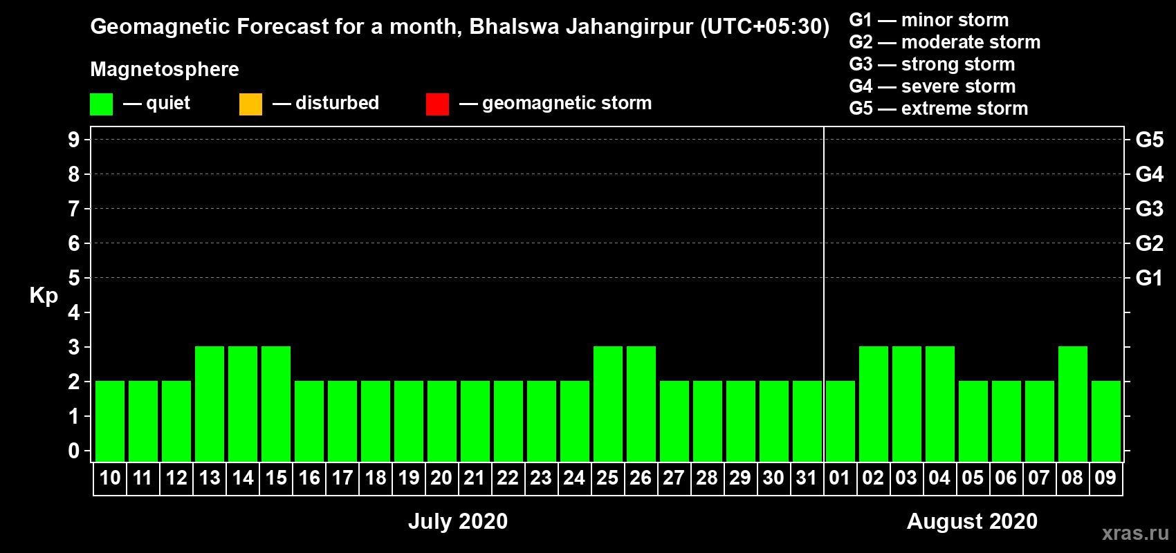 Geomagnetic storm forecast in Bhalswa Jahangirpur for Jul 10, 2020