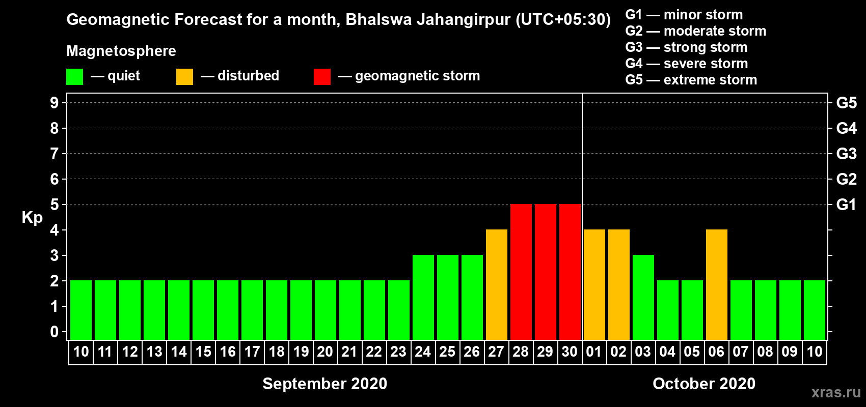Geomagnetic storm forecast in Bhalswa Jahangirpur for Sep 10, 2020