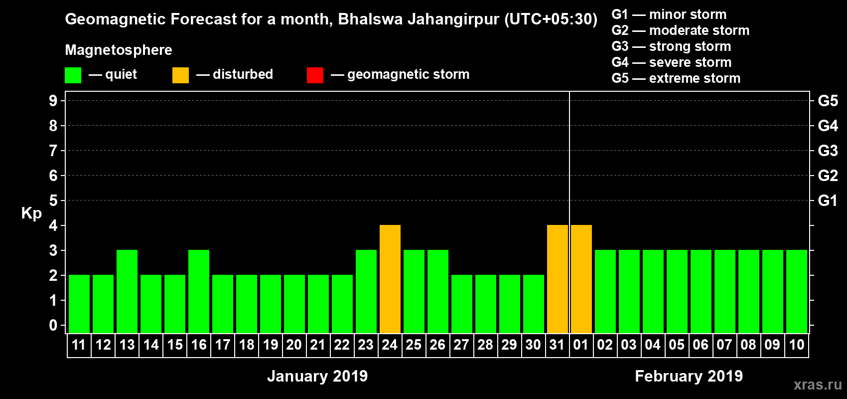 Geomagnetic storm forecast in Bhalswa Jahangirpur for Jan 11, 2019