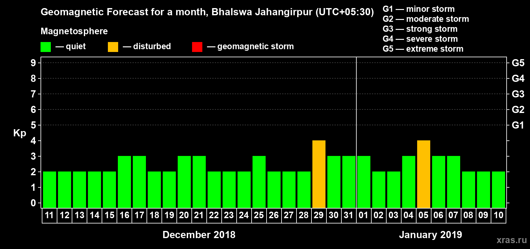 Geomagnetic storm forecast in Bhalswa Jahangirpur for Dec 11, 2018