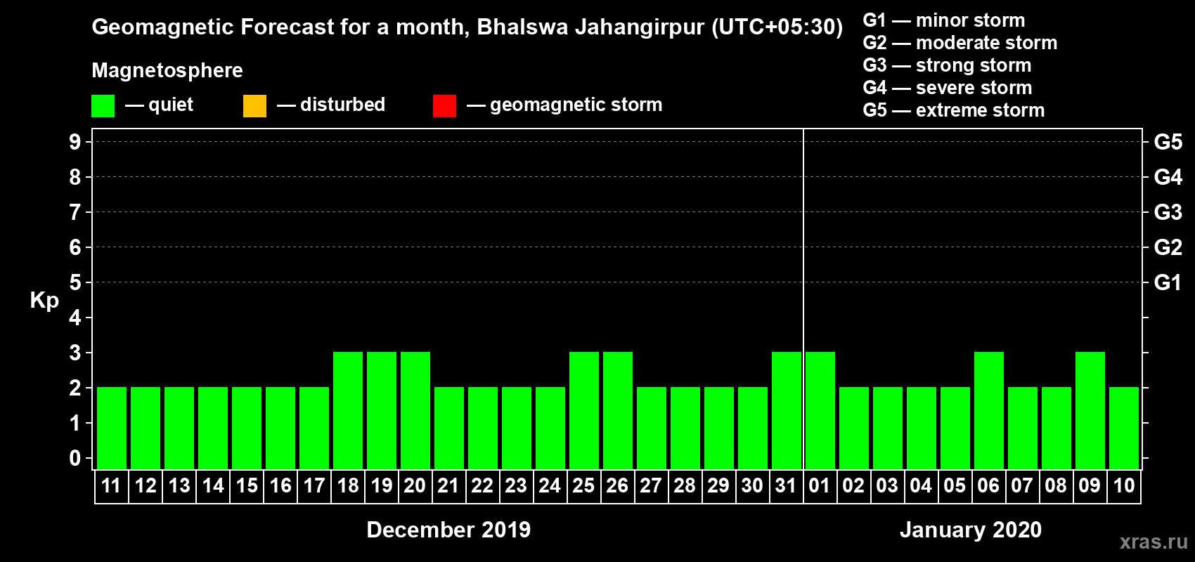 Geomagnetic storm forecast in Bhalswa Jahangirpur for Dec 11, 2019