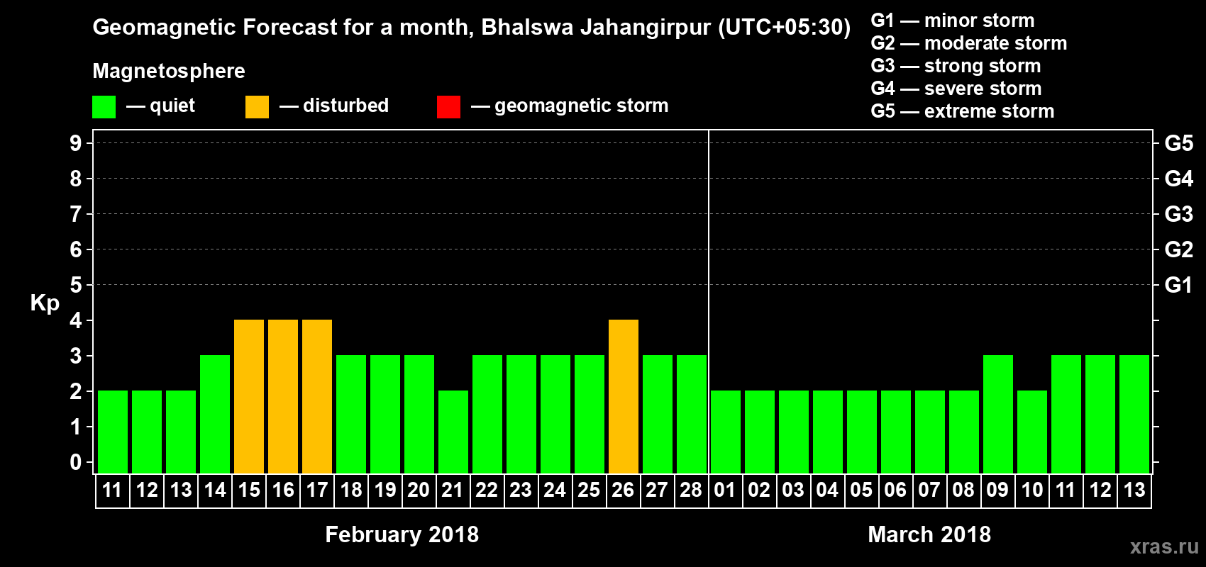 Geomagnetic storm forecast in Bhalswa Jahangirpur for Feb 11, 2018