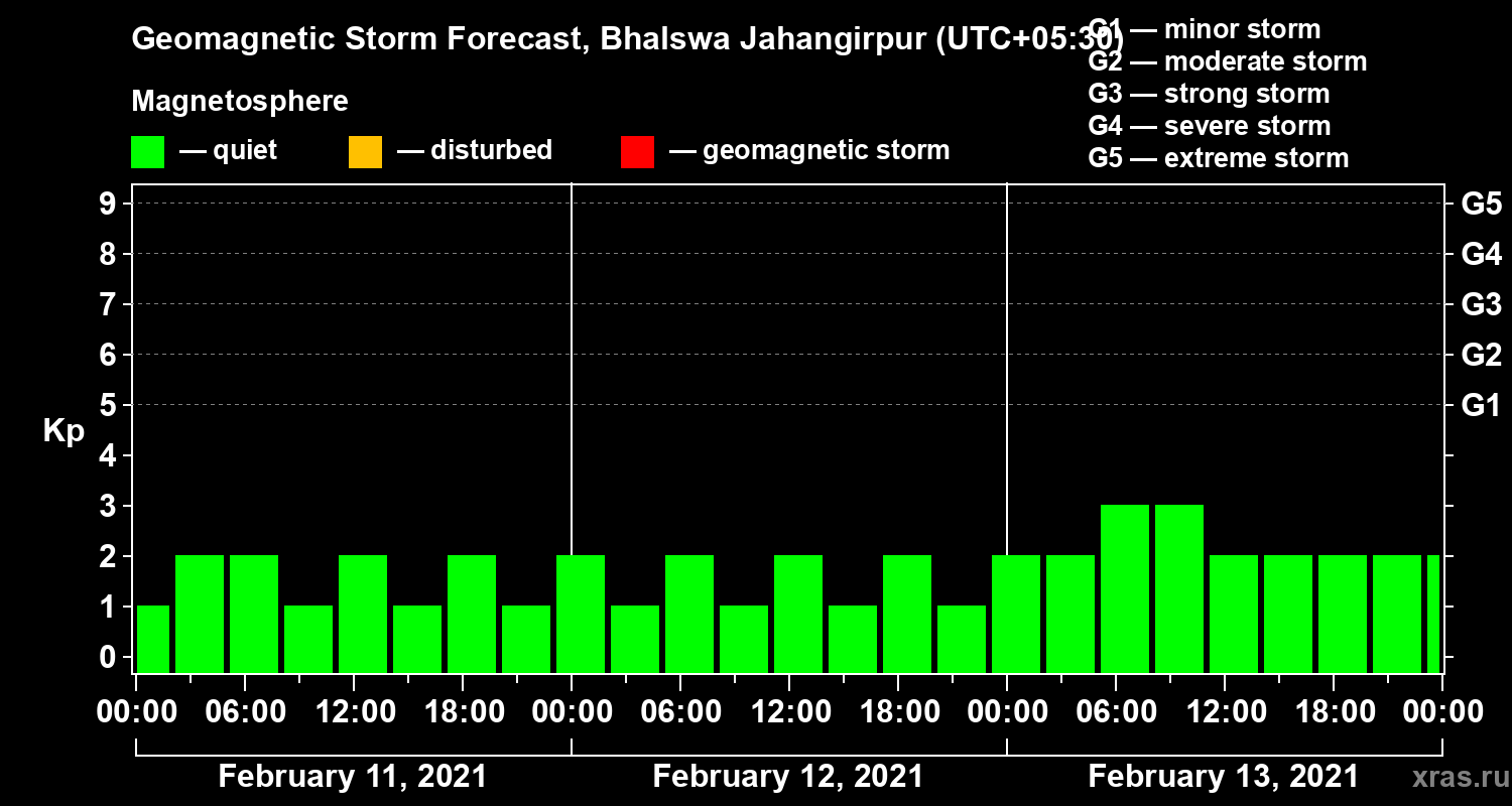 Geomagnetic storm forecast in Bhalswa Jahangirpur for Feb 11, 2021