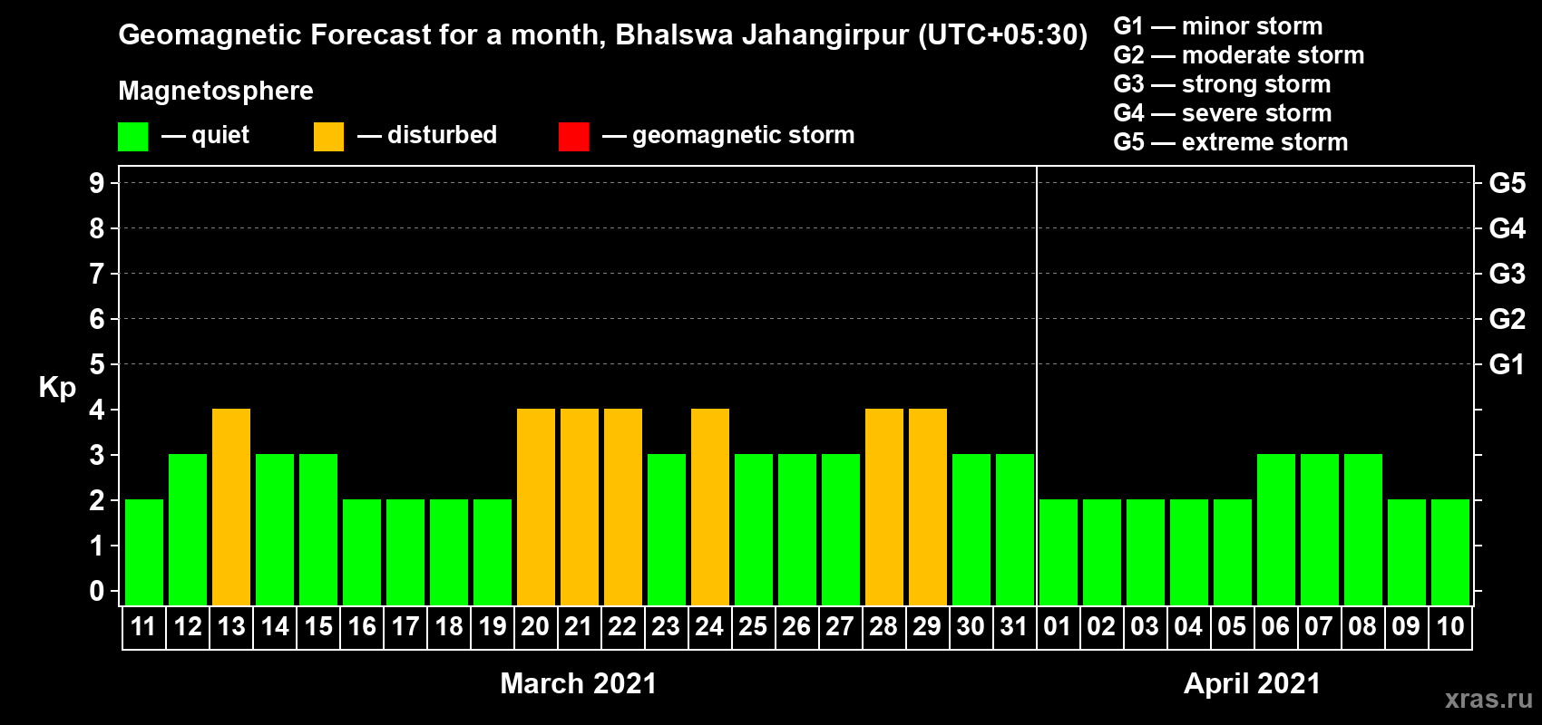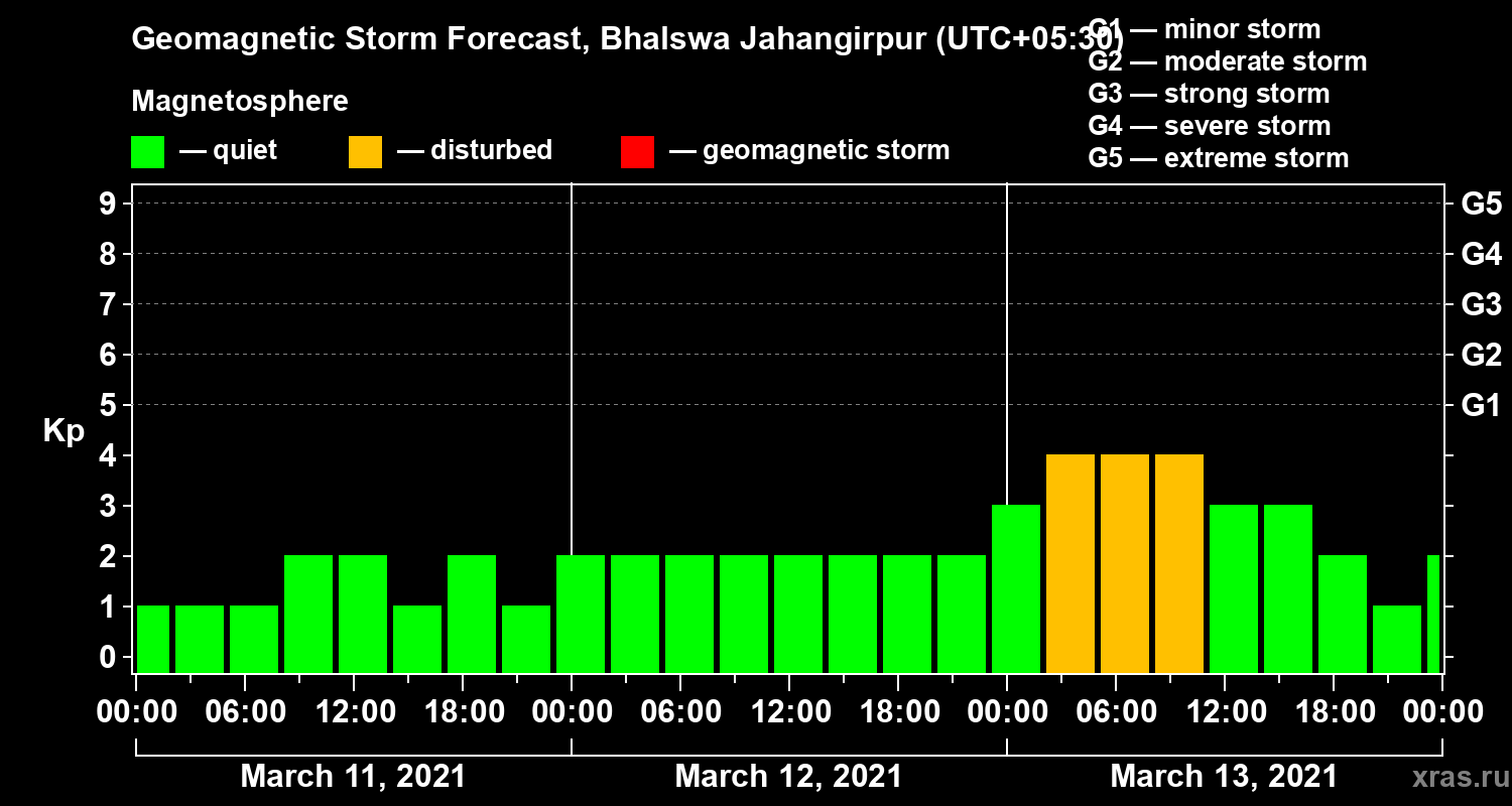 Geomagnetic activity forecast in Bhalswa Jahangirpur — Mar 11, 2021