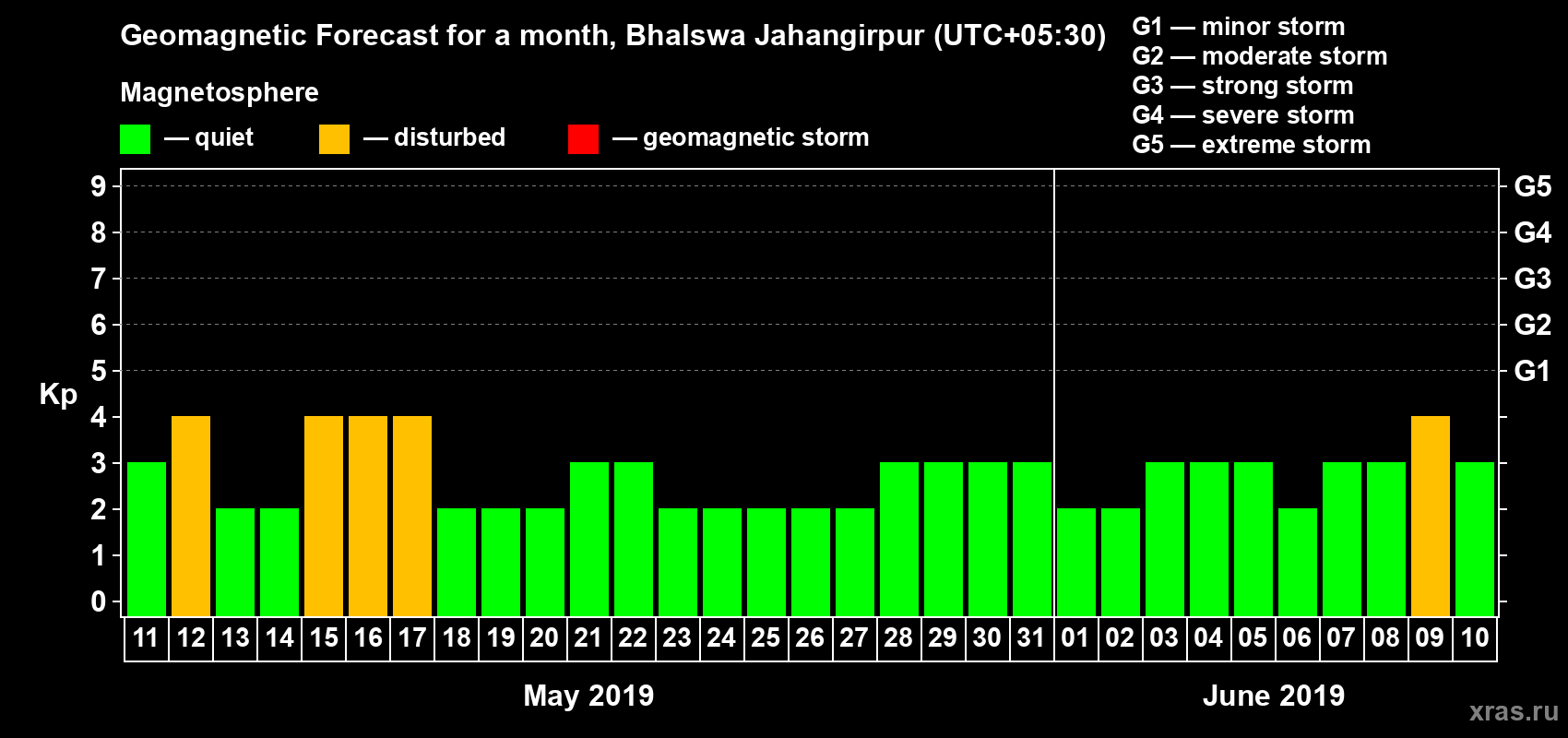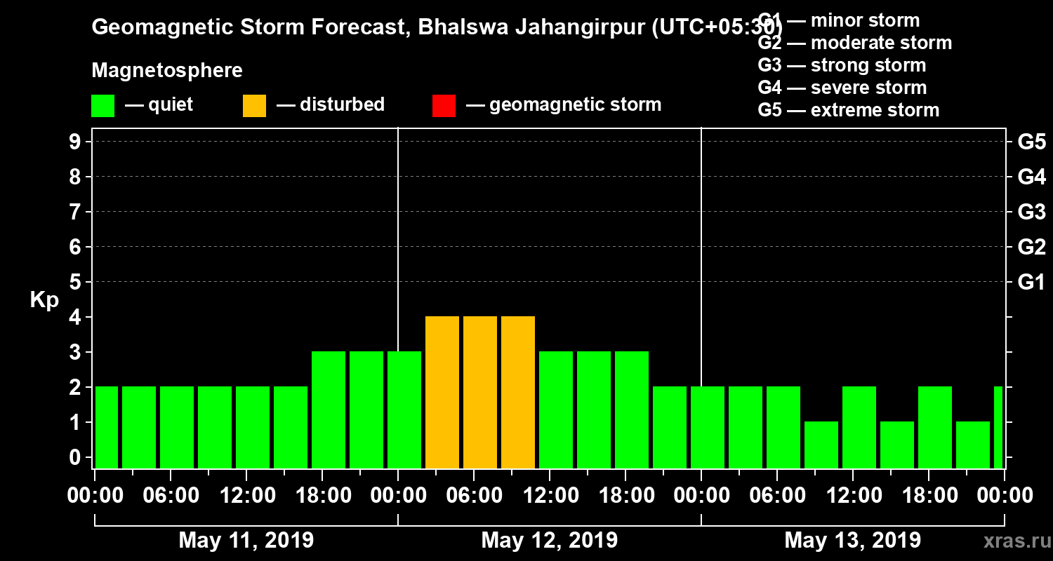 Geomagnetic storm forecast in Bhalswa Jahangirpur for May 11, 2019