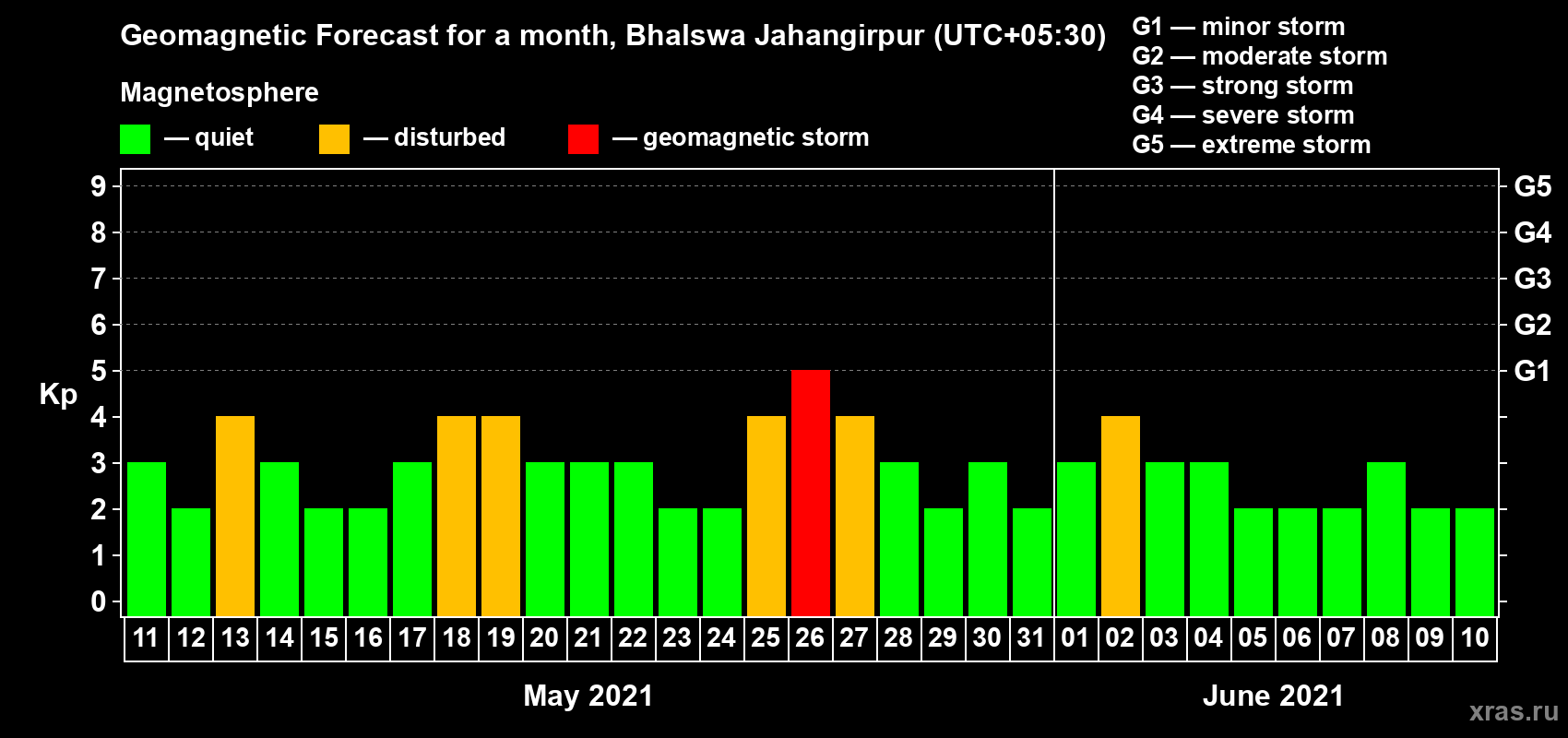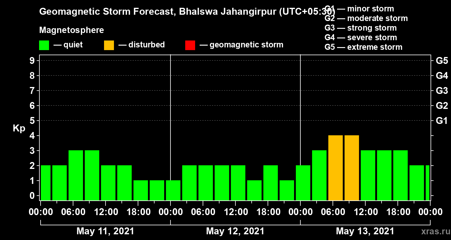 Geomagnetic storm forecast in Bhalswa Jahangirpur for May 11, 2021